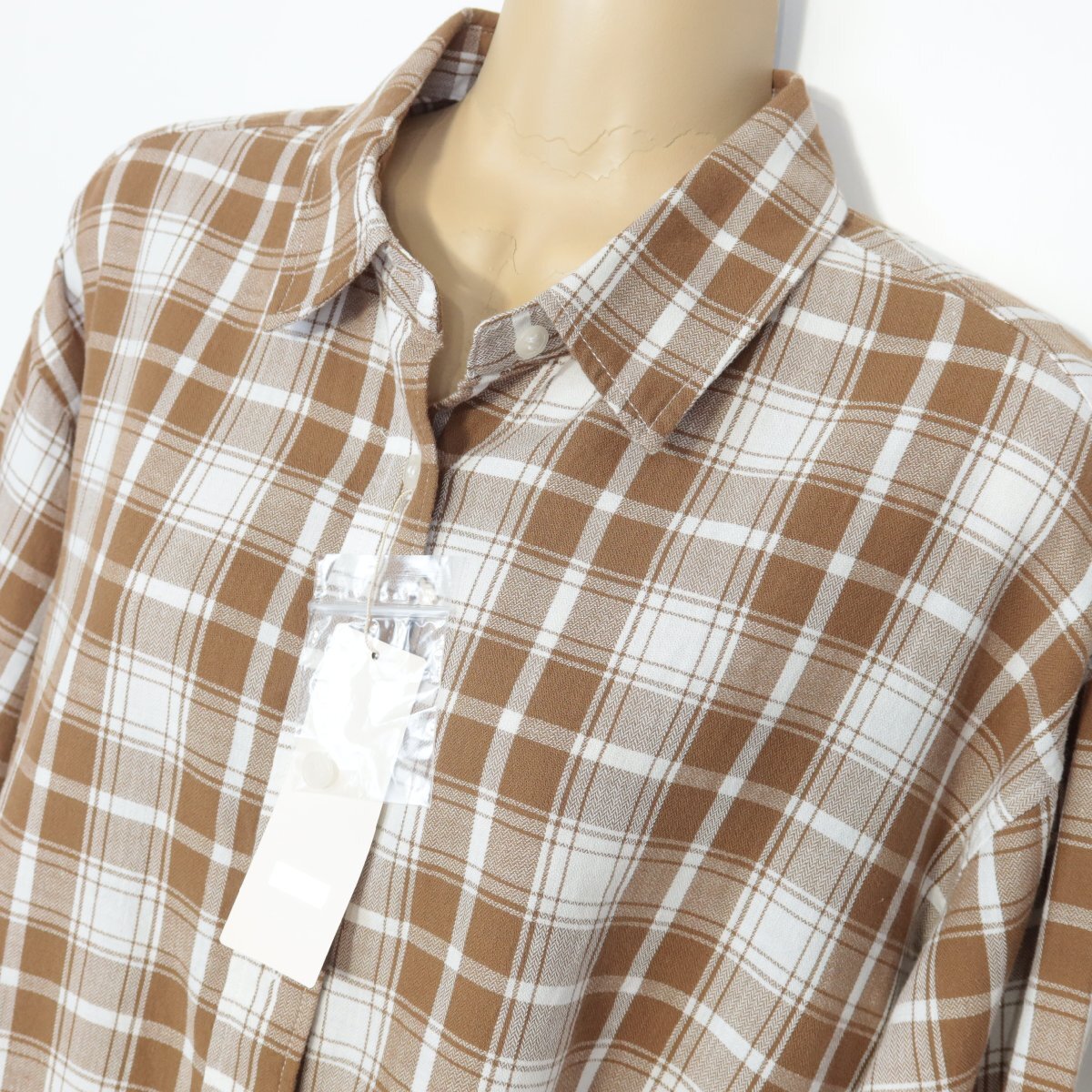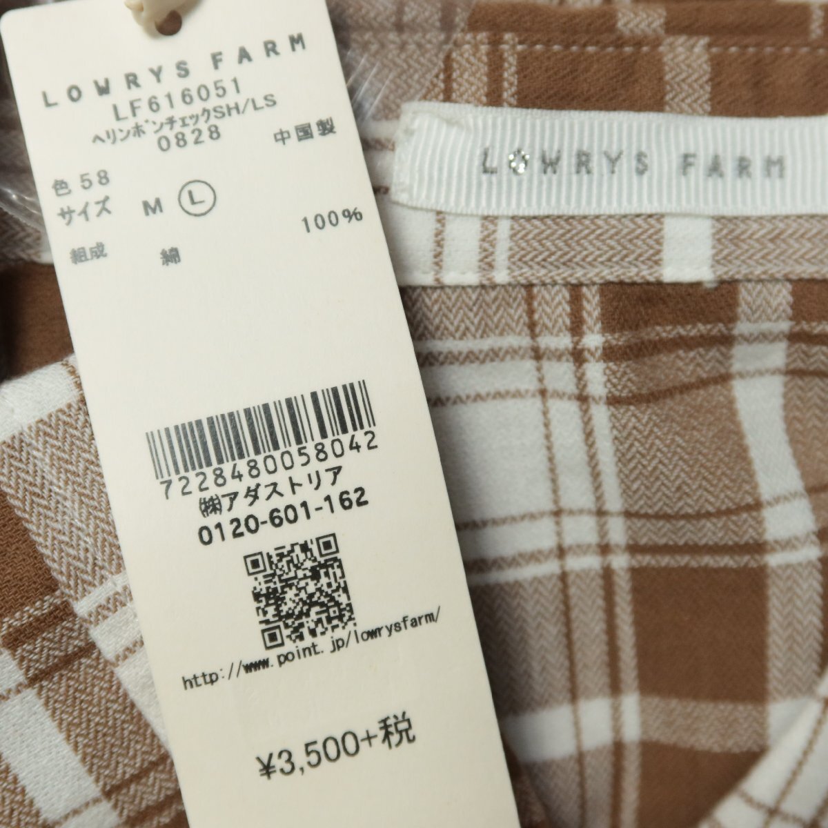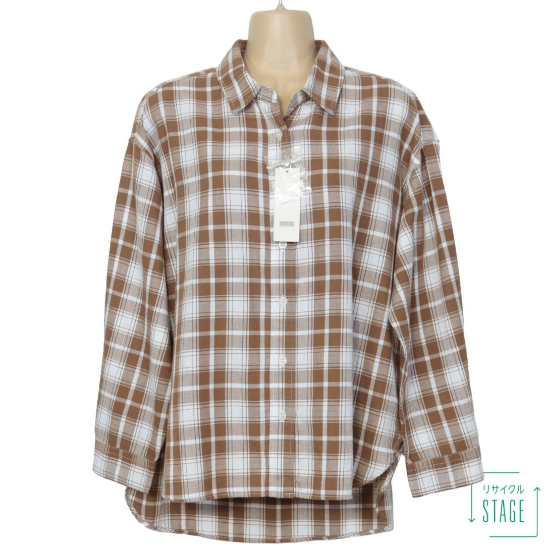 【新品タグ付き】ローリーズファーム★ヘリンボンチェックシャツ 大きいサイズL  綿100% 春秋冬物 キャメル色系茶色系白系 z6340