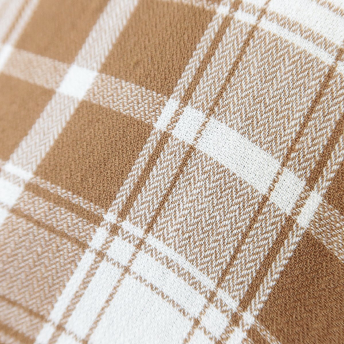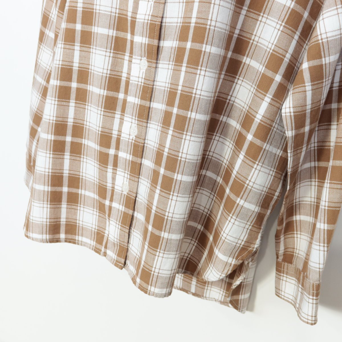 厚手ではないので、夏の羽織りものとしても活躍しそう。キャメル色系メインのチェック柄は