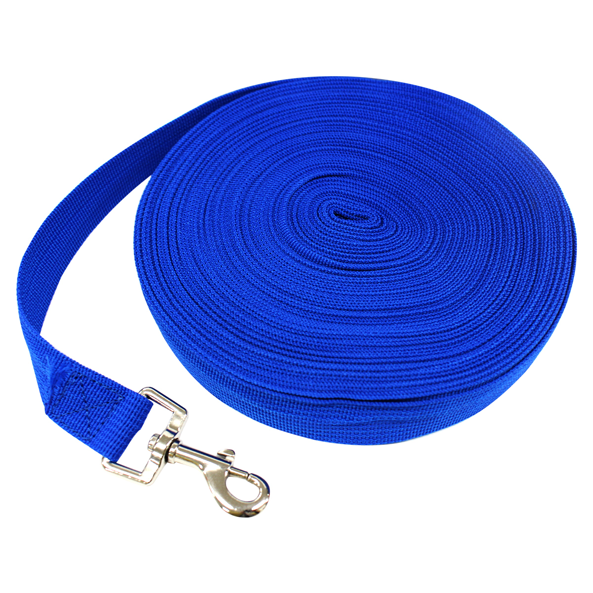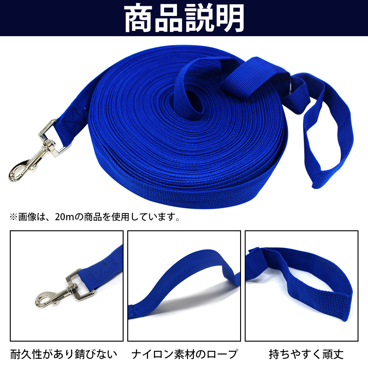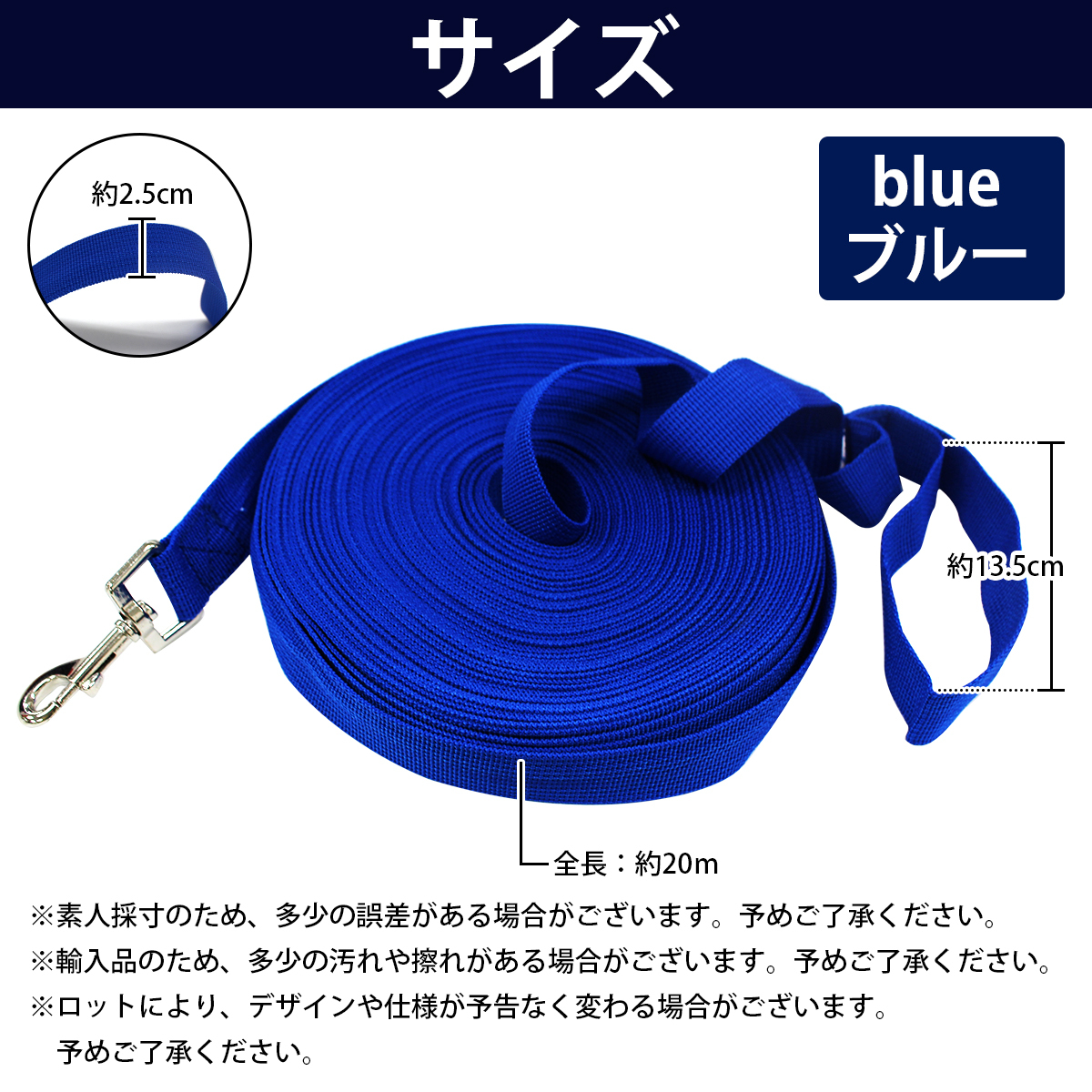 【送料無料】犬用 ロングリード 20m 幅2.5cm 耐荷重 50kg ブルー 青 ハーネス リード 散歩 紐 ナイロンベルト 小型 中型 大型犬 ペット 犬