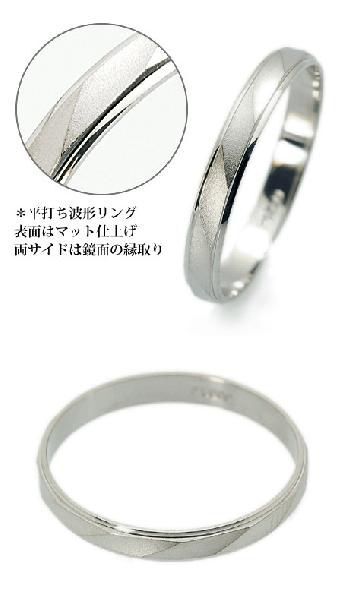 こちらのリングは、リング部分を平らに仕上げた「平打ち」仕様となり、表面は波形にして「マット(梨地、つや消し)」仕上げを施しております。