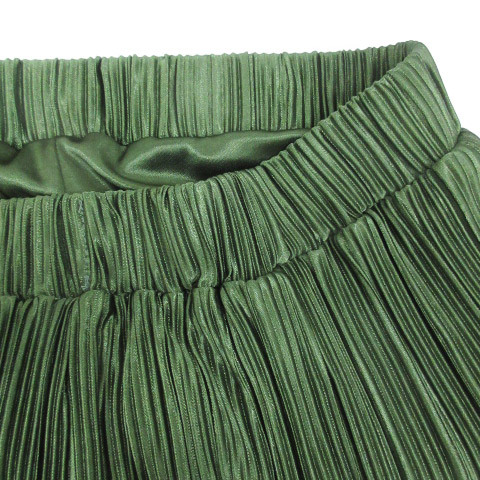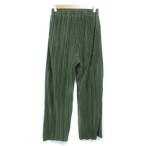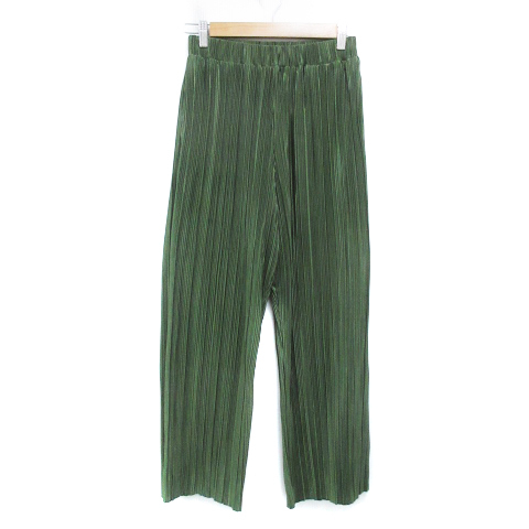 ローリーズファーム LOWRYS FARM プリーツパンツ ワイドパンツ イージーパンツ ロング丈 サテン 無地 F 緑 グリーン /FF41 レディース