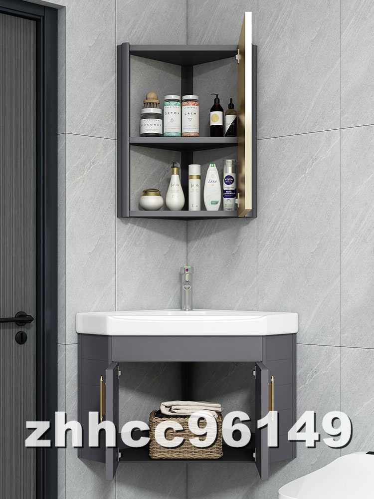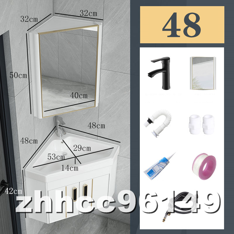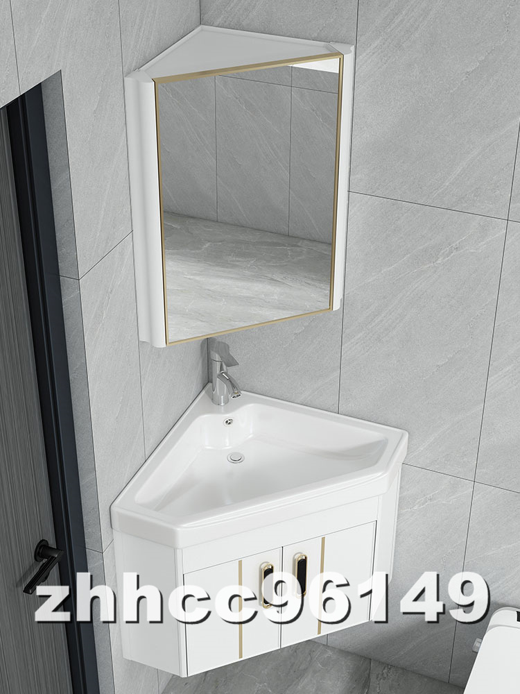 ■稀少品■壁掛型タイプ 洗面ボウル 洗面化粧台 混合水栓 鏡つき 三角形 便利 収納 洗面台 手洗台 蛇口・排水金具付き 48cm×48cm ホワイト