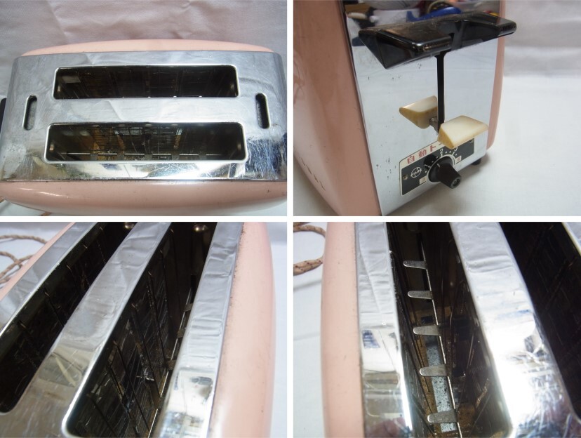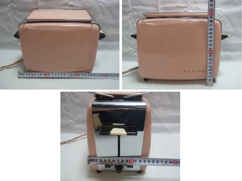 商品説明 | ナショナルのレトロなトースターです。 譲り受けたもののため、本来の状態など詳細は不明です。 長期自宅保管品です。 擦れや傷、焦げ跡など相応の経年使用感があります。 通電、および発熱、パンを焼いた動作は確認済みです。 軽く掃除をしたうえで現状でのお渡しとさせていただきますので、 以上の点を御了承の上ご検討をお願い致します。 状態に関しましては、画像にてご判断と十分なご検討をお願い致します。 長期自宅保管の古い物になりますので、ご理解いただける方のご入札いただけますと幸いです。 気になる点がございましたら、ご入札前にご質問くださいませ。 撮影した照明により、色合いが多少違って見えるかもしれませんが、ご了承ください。 サイズ 約30cm×15cm×20cm ※素人採寸につき、誤差ご了承ください 【発送方法】 ・ゆうパック/80サイズ |