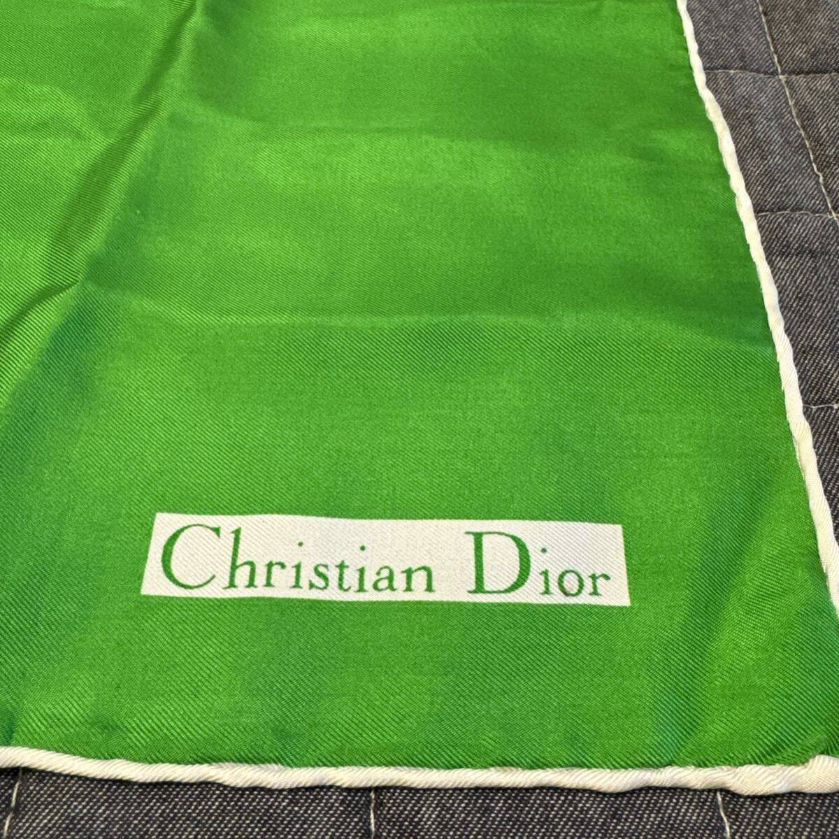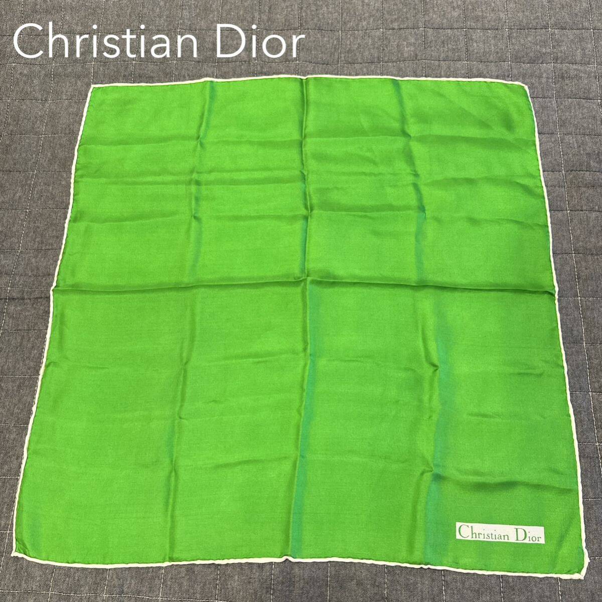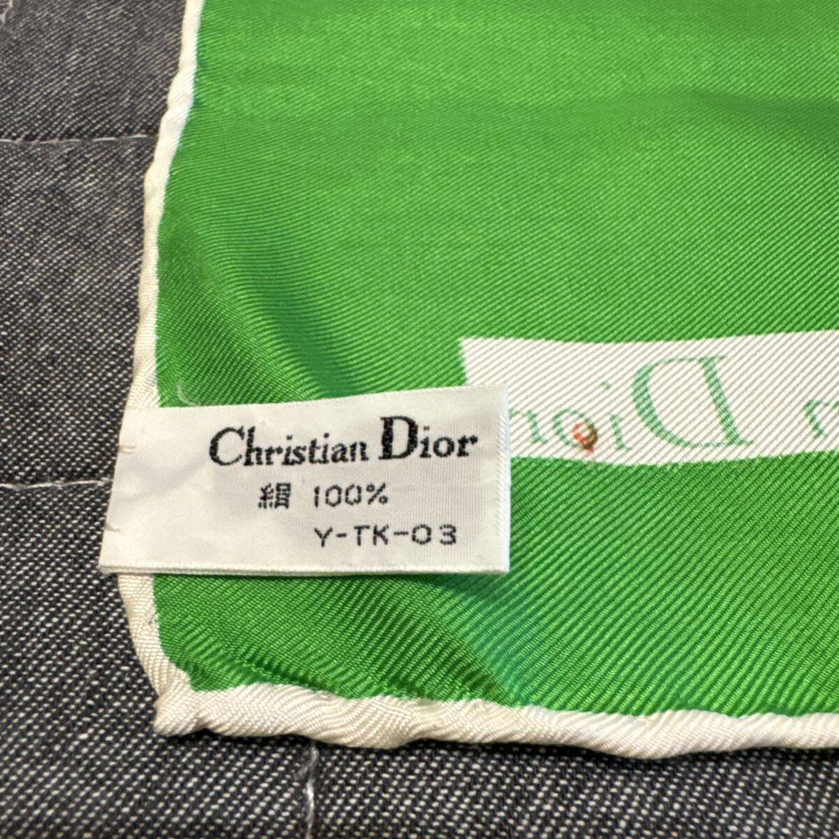 Christian Dior クリスチャンディオール シルク ハンカチ グリーン ロゴ
