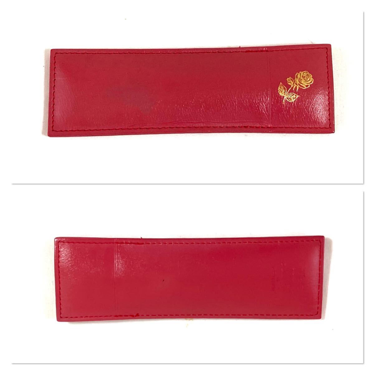1箇所目立った凹みありますが、その他は、比較的綺麗なお品です。お洒落な赤のレザーペンケース、黒の純正リフィルもお付けしました。この機会にいかがでしょうか?