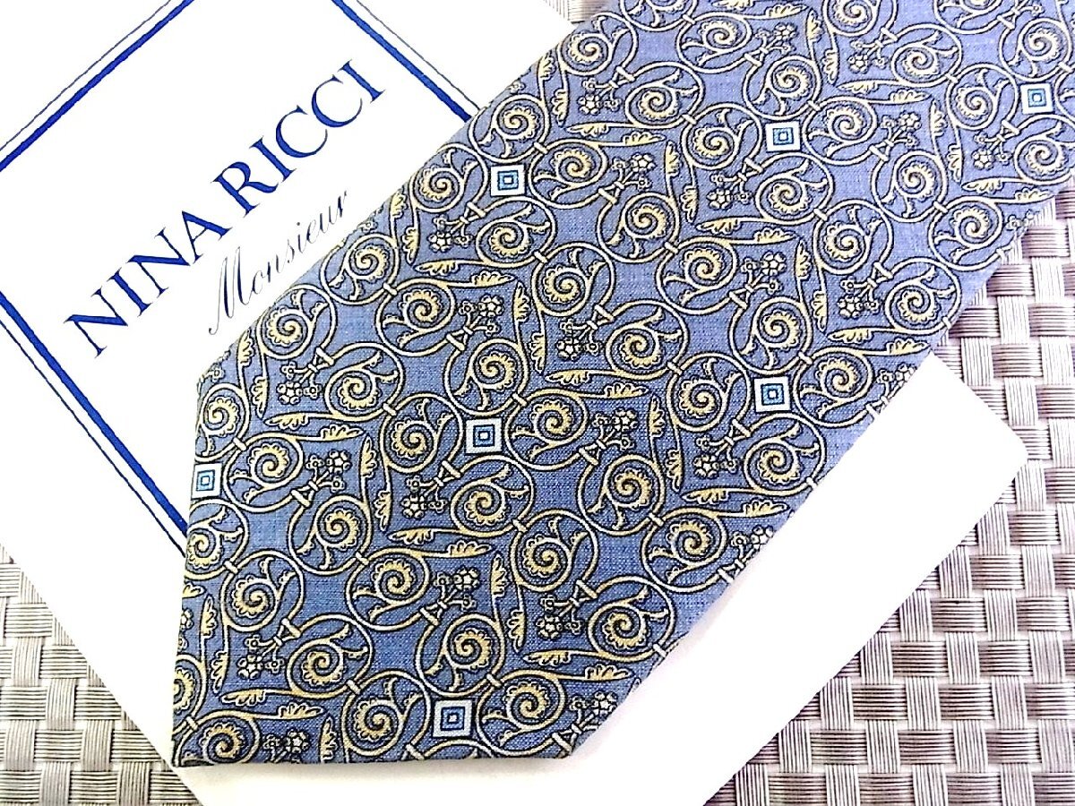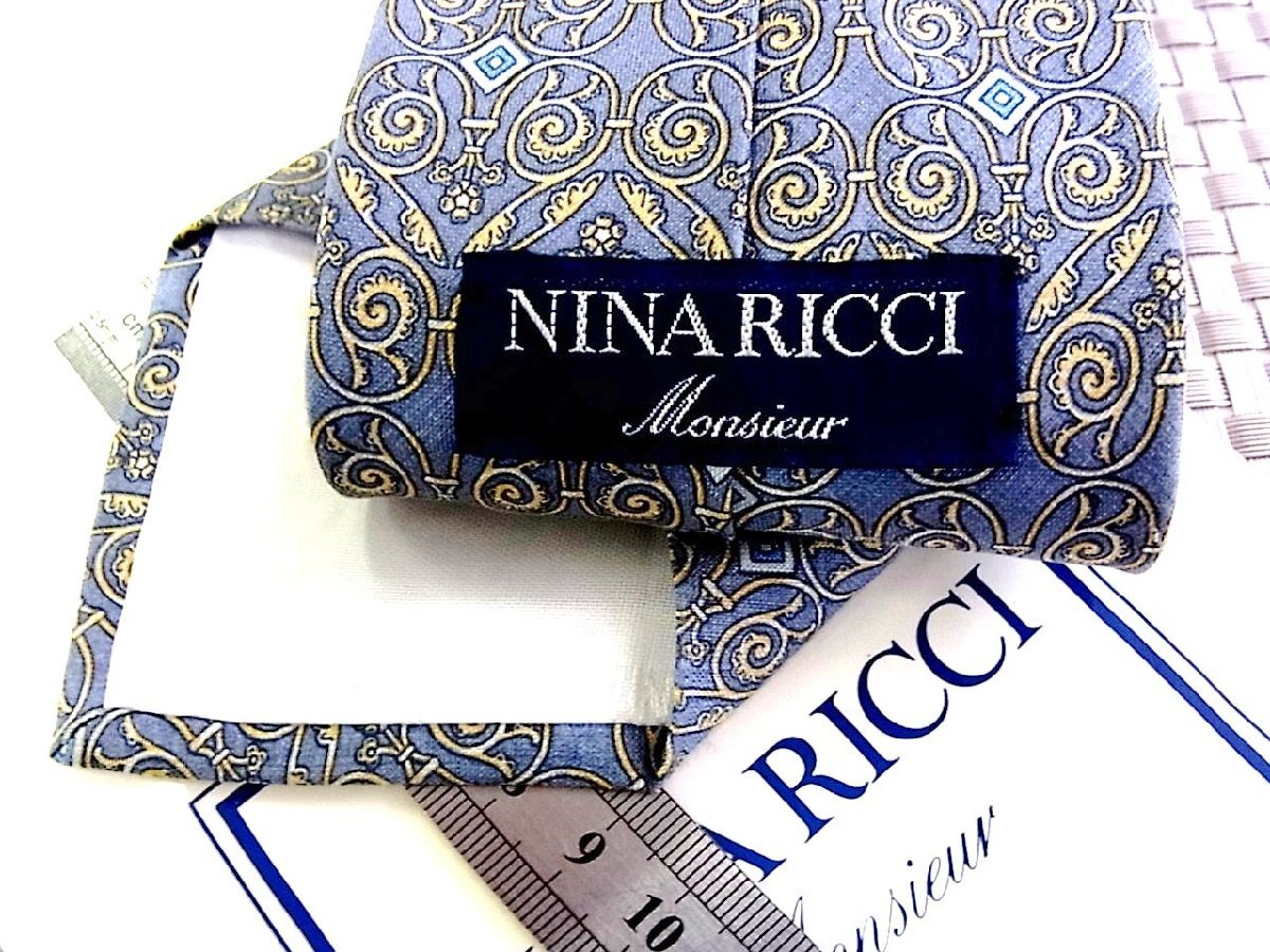 ♪33573C♪良品【花 葉っぱ 装飾 柄】ニナリッチ【NINA RICCI】ネクタイ