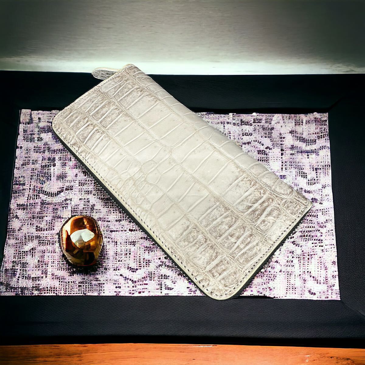 ハンドメイドにより海外工房で特注オーダーにて制作された、シャムクロコダイル長財布の出品になります。