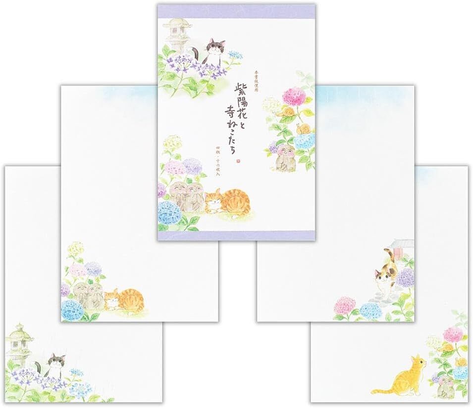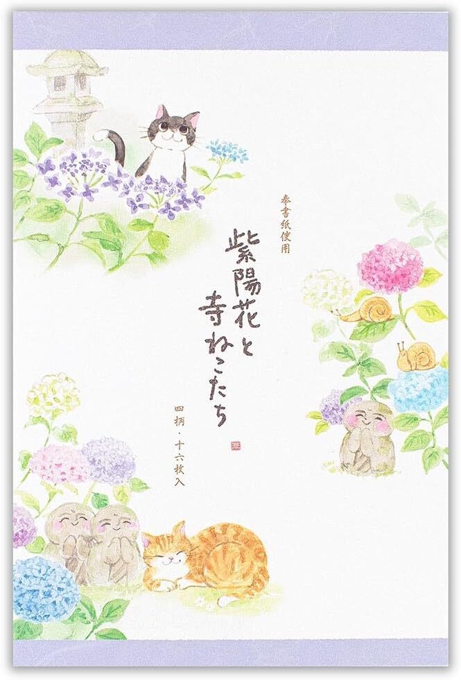 エヌビー社 便箋 ねころび 紫陽花と寺ねこ | 4柄アソート 16枚入 a5相当 4590443 /【メール便OK】
