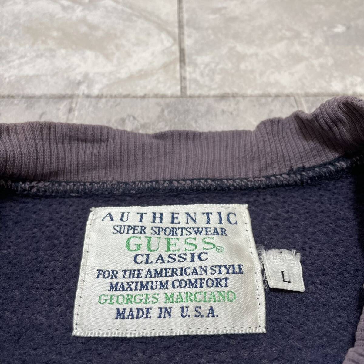 90s USA製 GUESS ゲス sweat スウェット 刺繍ロゴ ビッグロゴ トレーナー ヴィンテージ ナスコン ネイビー サイズXL 玉FL3494