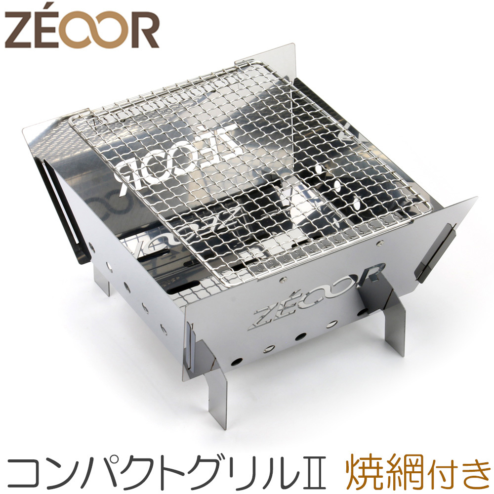 ゼオール バーベキューコンロ 卓上 小型 ステンレス 組み立て式 コンパクトグリル2 BBQグリル 網 収納ケース付き BG10-12G