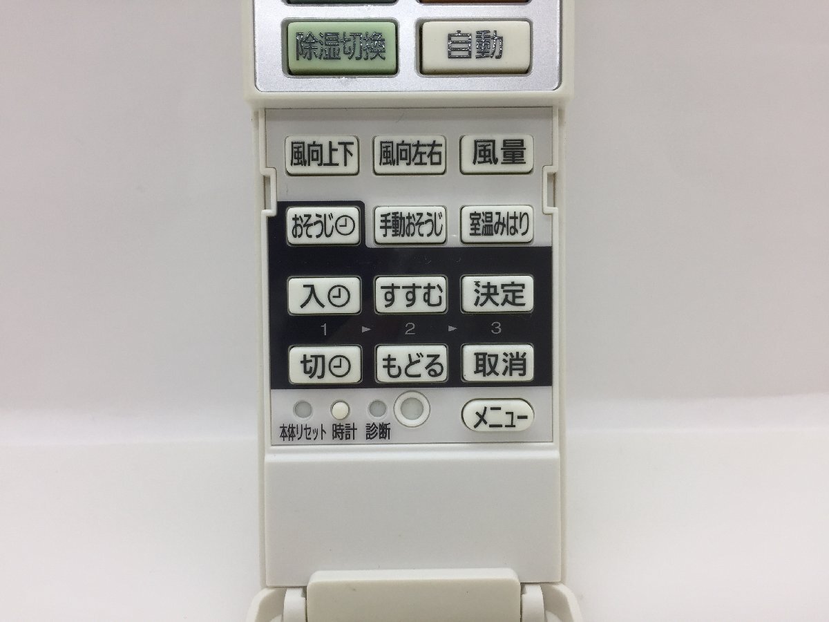 (エアコンリモコンの場合、正面からだとディスプレイ表示が薄い仕様のものもございます。不具合ではございません。)