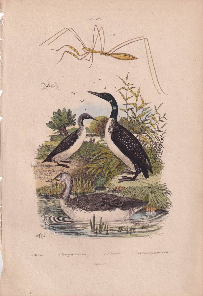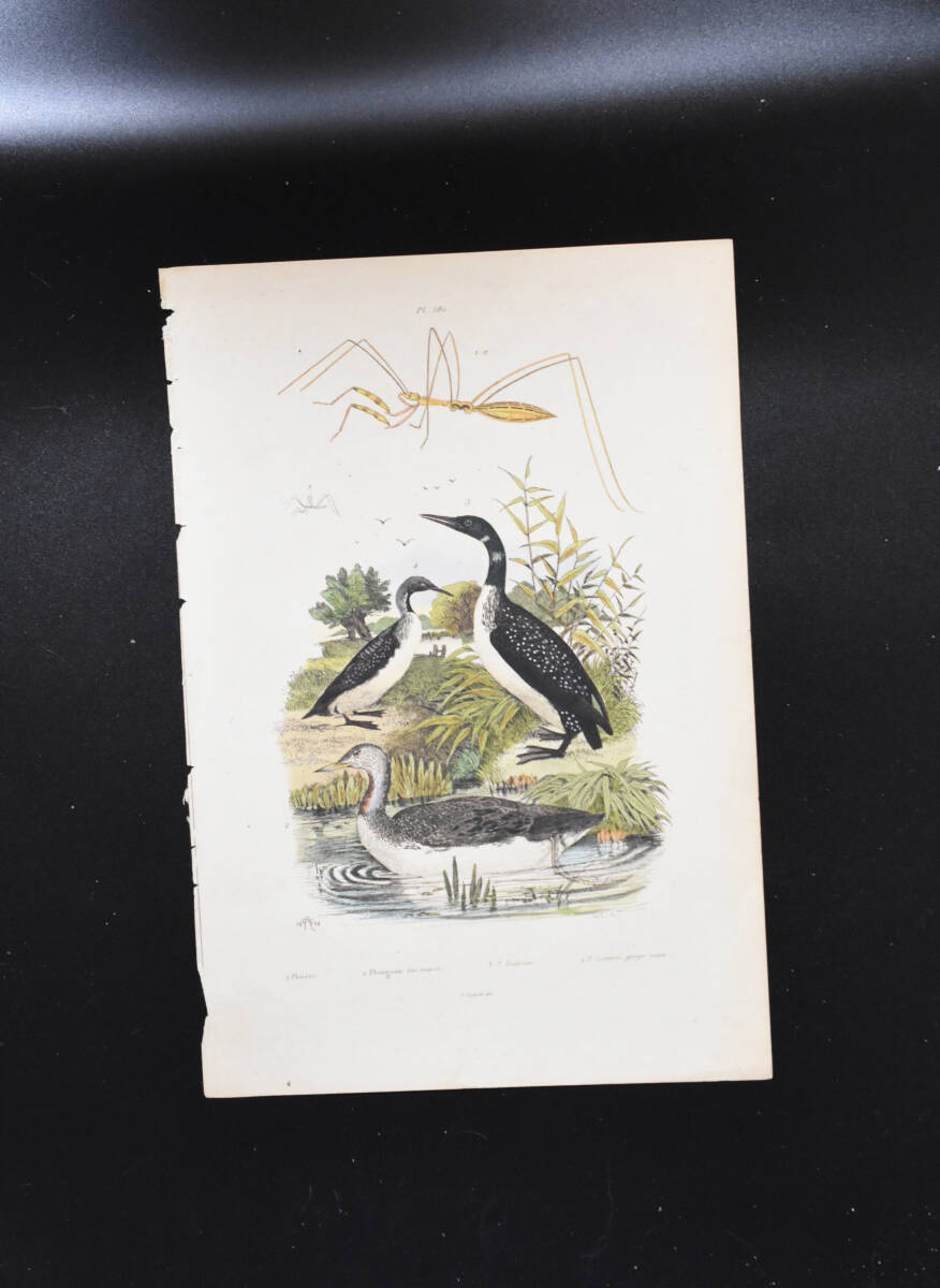 フランスアンティーク 博物画 『鳥類・昆虫 Imbrim』 多色刷り銅版画