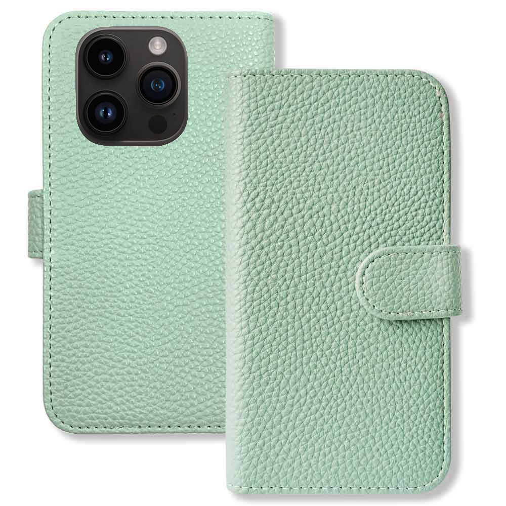 iPhone14 Pro アイフォン14プロ スマホケース(手帳アイスグリーン)カバー 手帳 カード収納 ニュアンスカラー くすみカラー