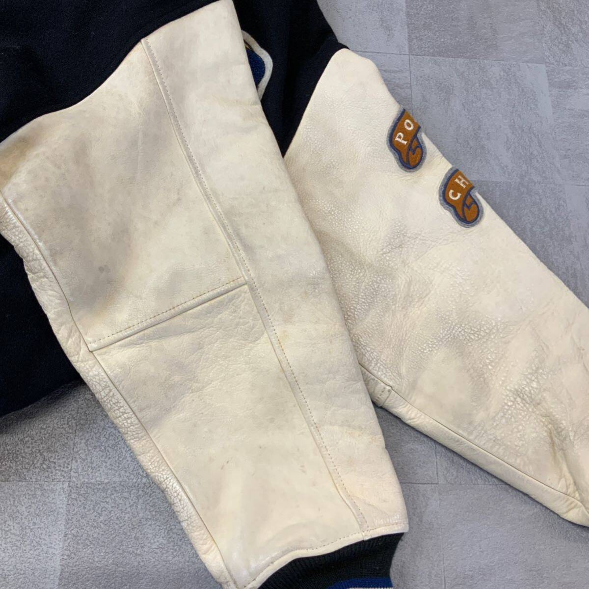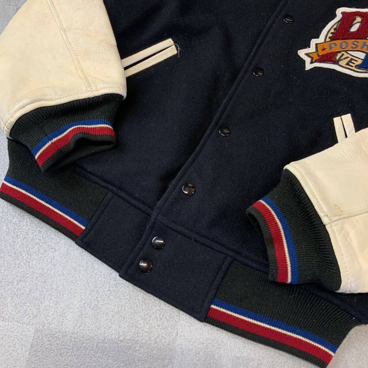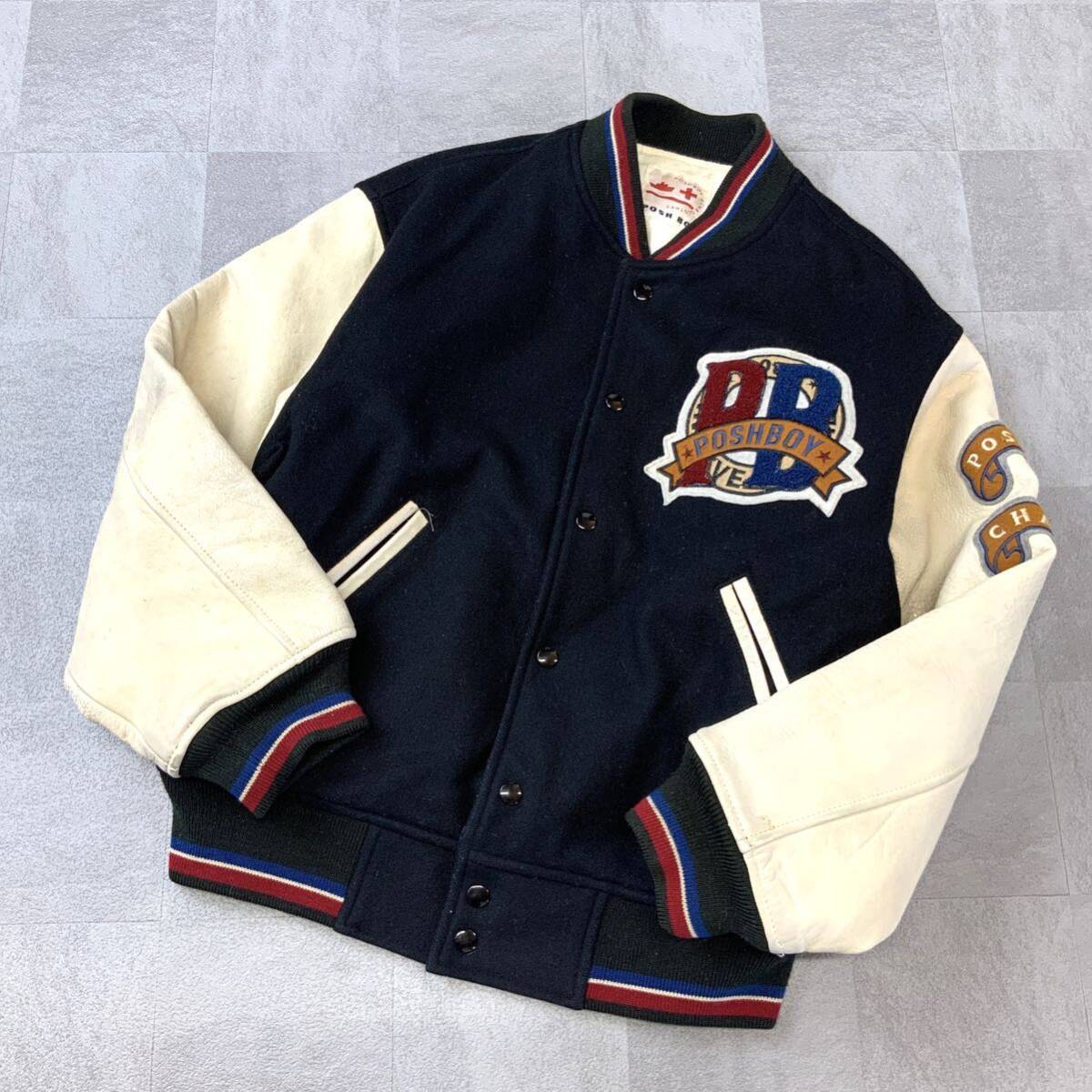 本革 80‘s POSH BOY フルデコ 刺繍 スタジアムジャンパー スタジャン メンズ Fサイズ フリー ブラック ベージュ ビンテージ 袖レザー