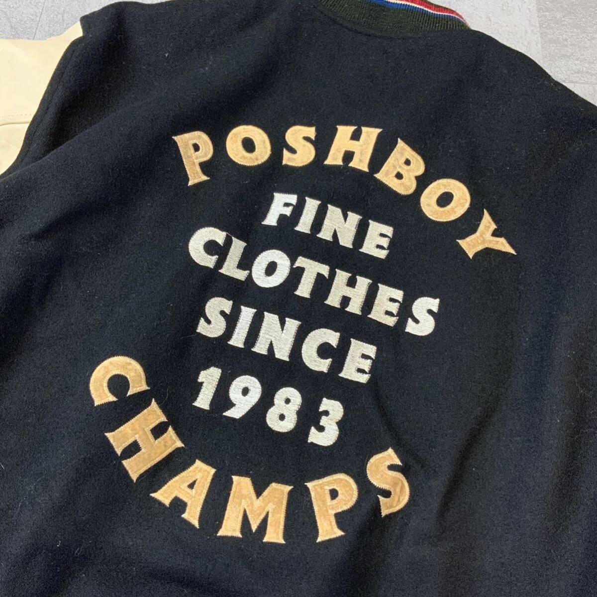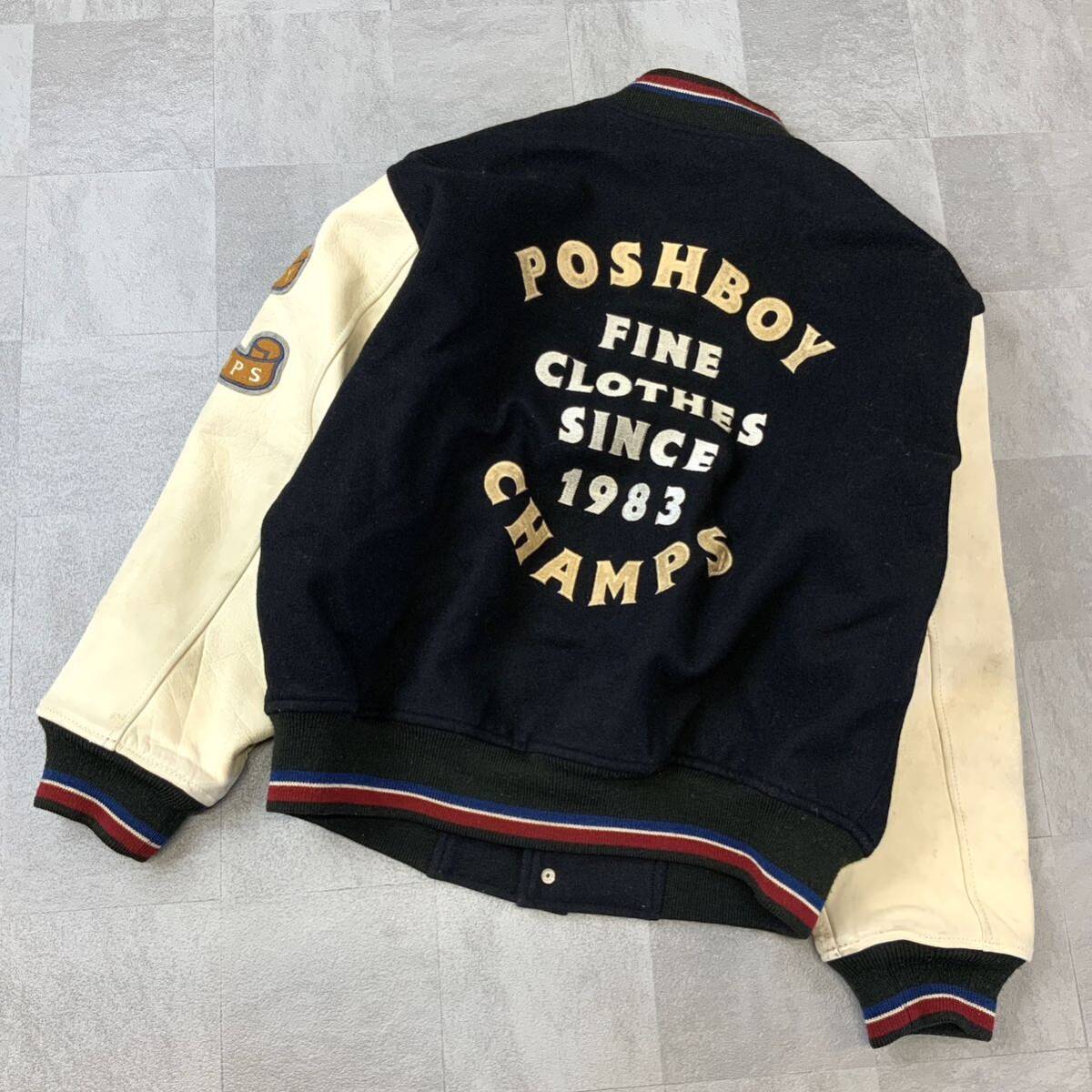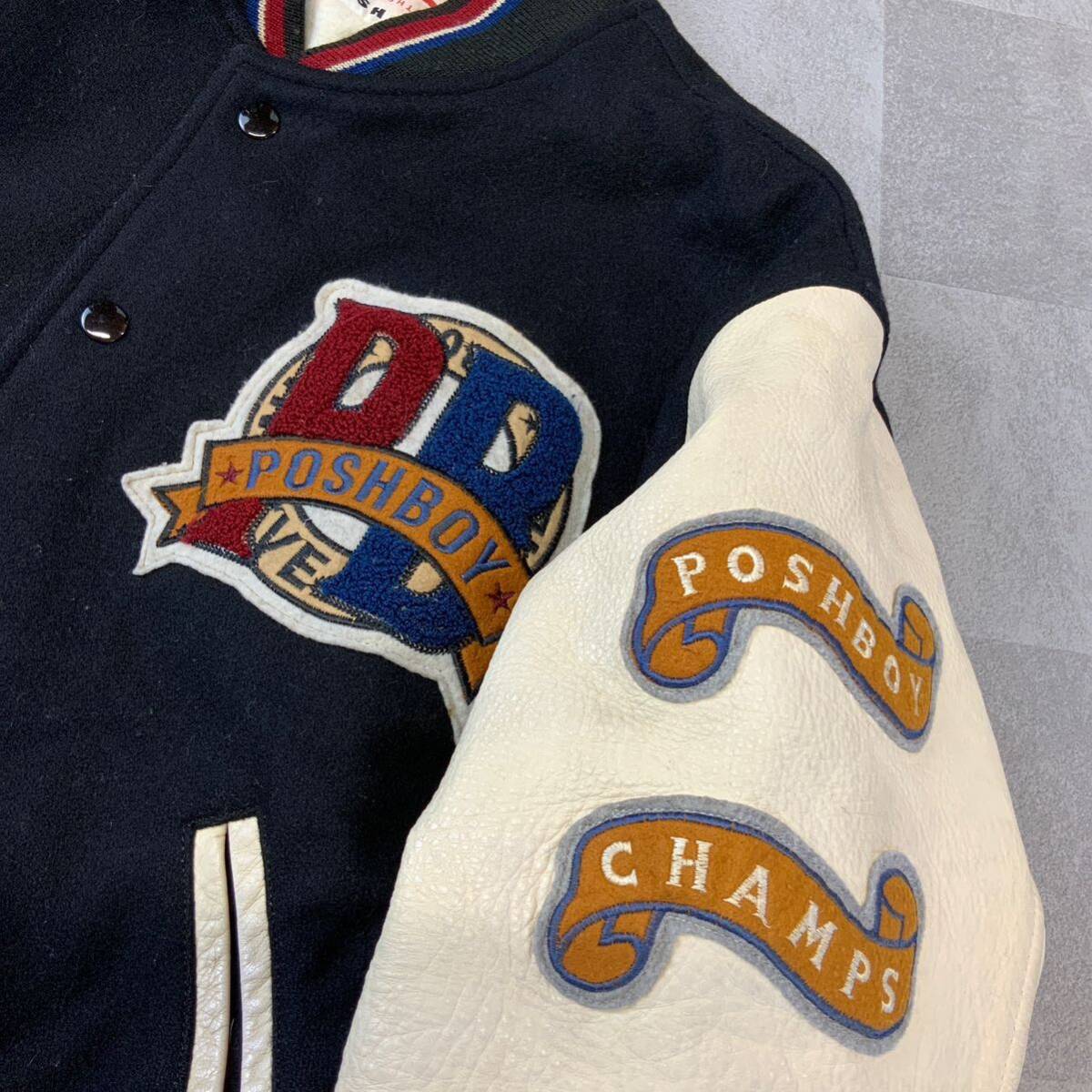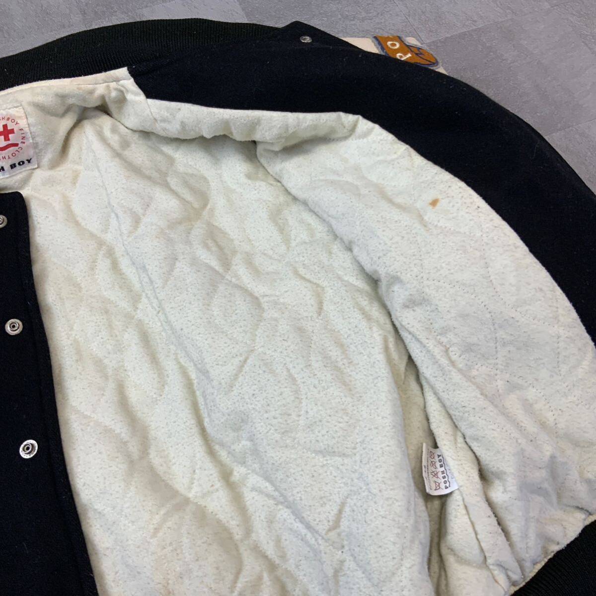 本革 80‘s POSH BOY フルデコ 刺繍 スタジアムジャンパー スタジャン メンズ Fサイズ フリー ブラック ベージュ ビンテージ 袖レザー