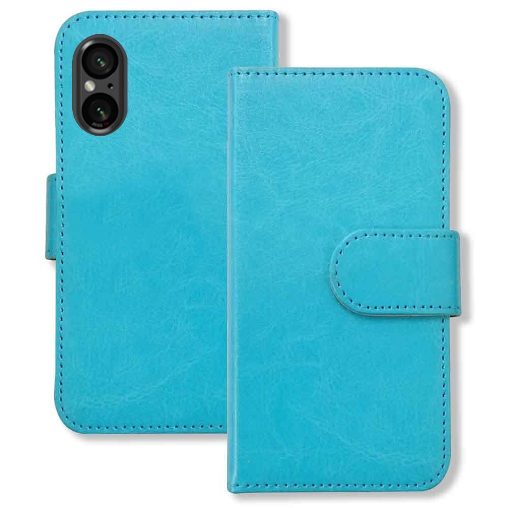 Xperia 5 V SO-53D SOG12 エクスペリア5マーク5 スマホケース(手帳ブルー)手帳型 PUレザー 無地 ケース ダイアリータイプ 横開き カード収納 カバー