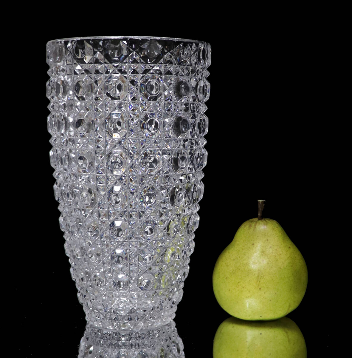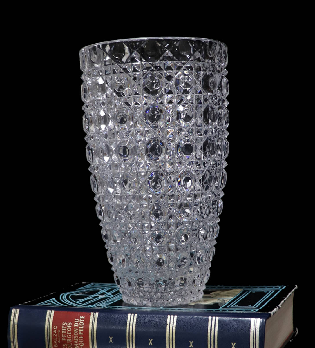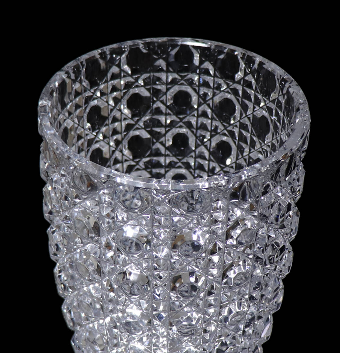 オールド・バカラ (BACCARAT) ディアマン・ピエーリー 大型 花瓶 20.8cm 1.3kg ダイヤモンド 切子 ギヤマン 義山 レア アンティーク 壺