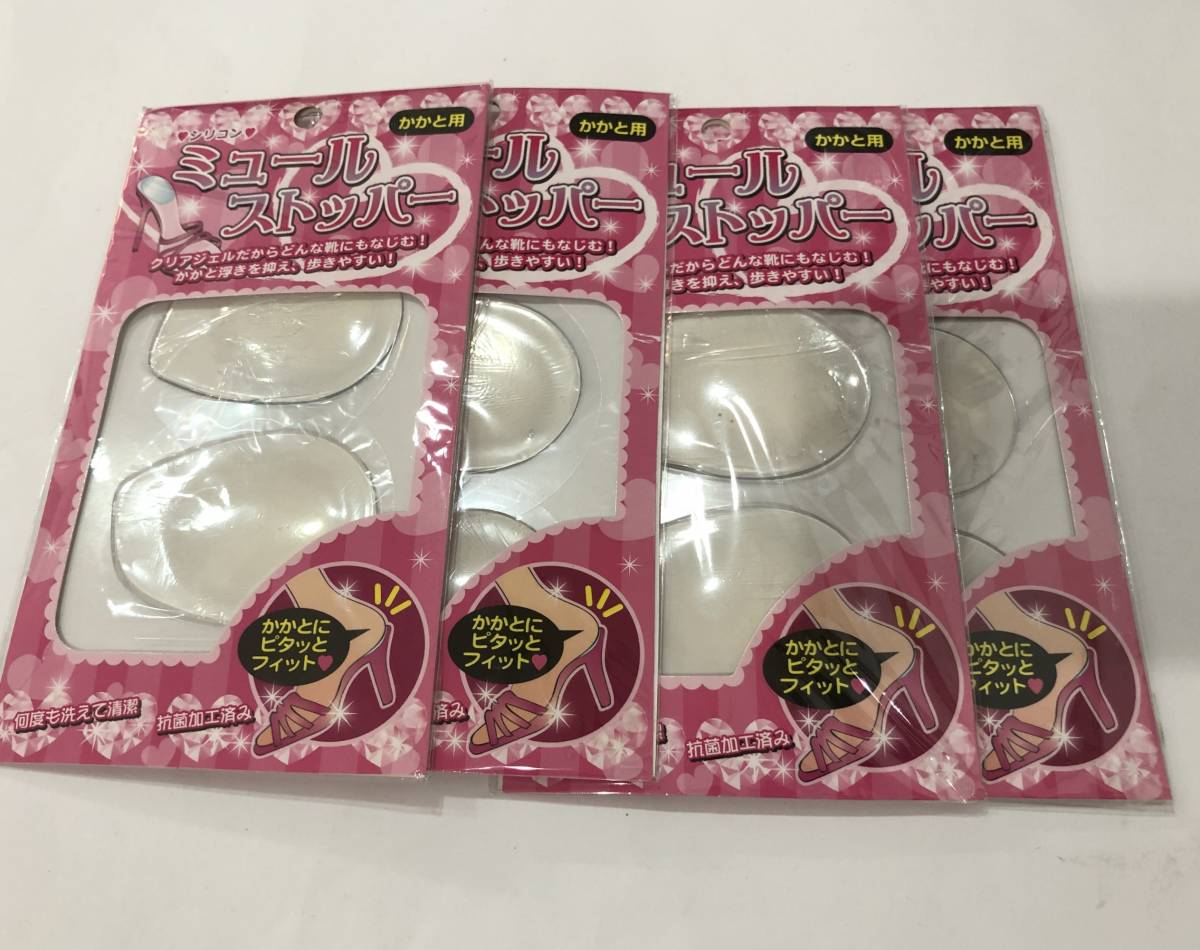 ミュールストッパー シリコン かかと 4枚セット ジェルクッション サンダル ミュール パンプス
