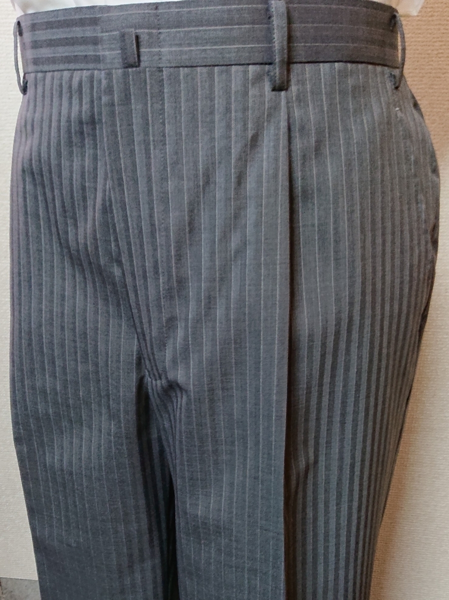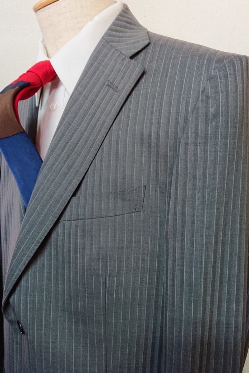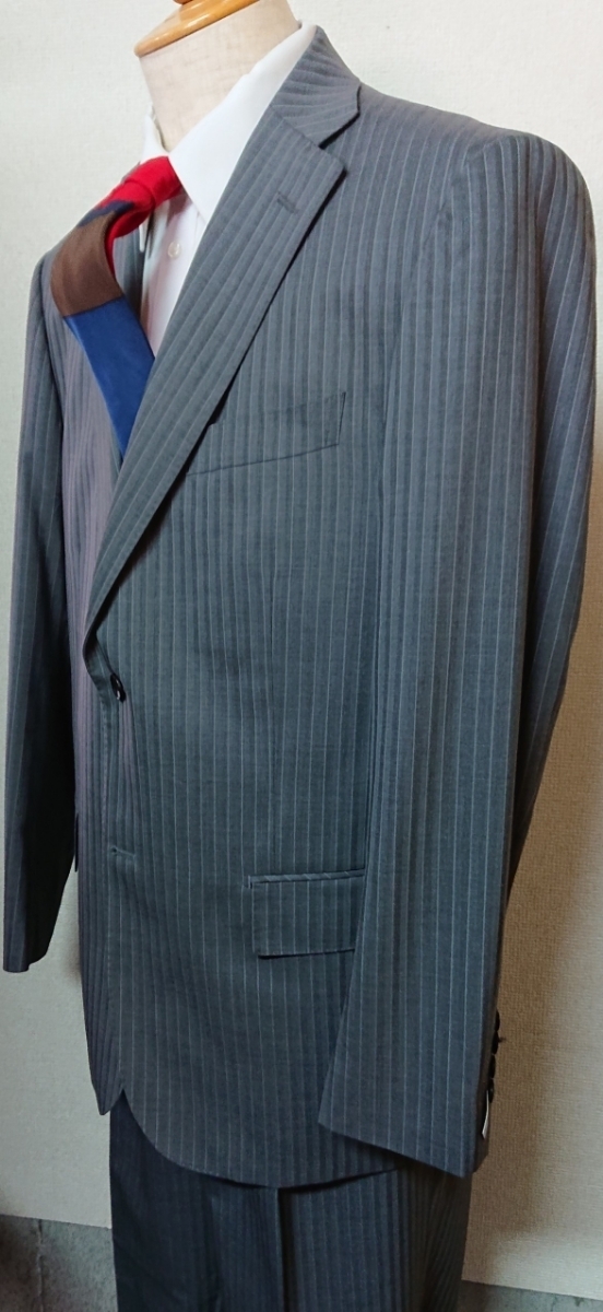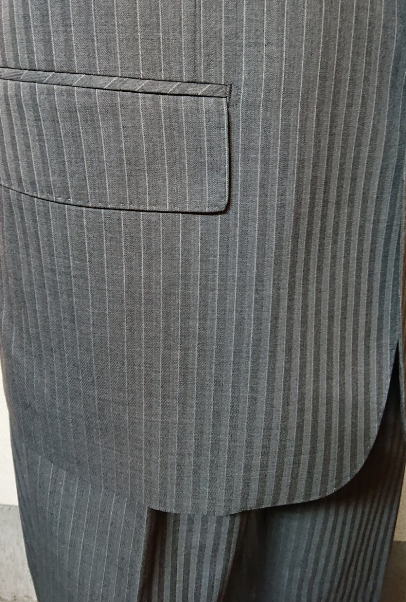 サイズ⇒AB8(90) ジャケット⇒着丈77.5cm、肩幅49cm、身幅57cm、袖丈64.5cm パンツ⇒ウエスト90cm、股上28cm、ワタリ幅38cm、裾幅23.7cm、股下96.5cm ※測り方によって誤差は生じます。 色・柄⇒グレー、ストライプ 表地⇒毛54%、ポリエステル46% 裏地(総裏)⇒ポリエステル100% 袖裏⇒キュプラ100% ベント⇒サイドベンツ 袖ボタン⇒4個 ステッチ⇒入り 台場⇒切台場 パンツ⇒ワンタック 商品状態⇒新品 着用季節⇒秋冬 R3-622152TR | |||