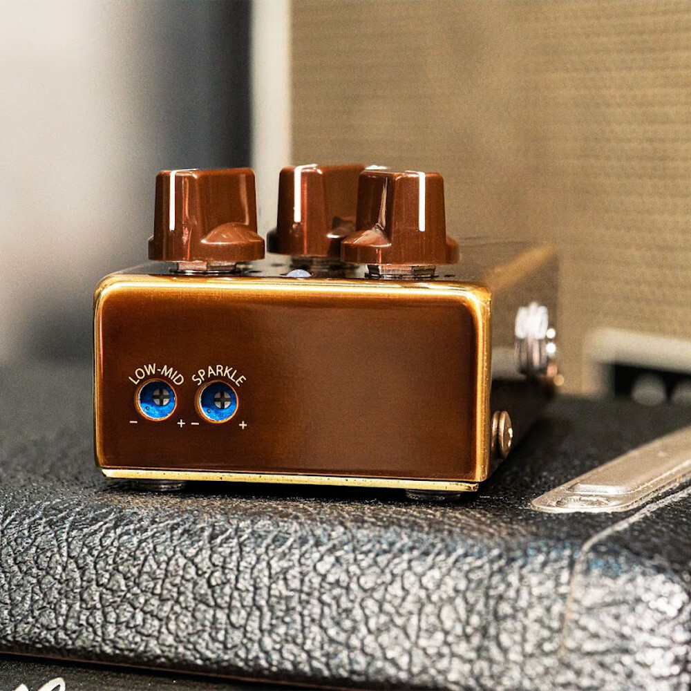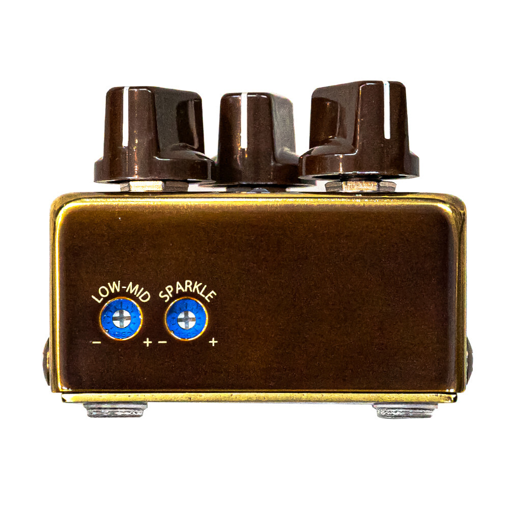 Controls : VOLUME, GAIN, TONE, LOW-MID (Trimmer), SPARKLE (Trimmer)