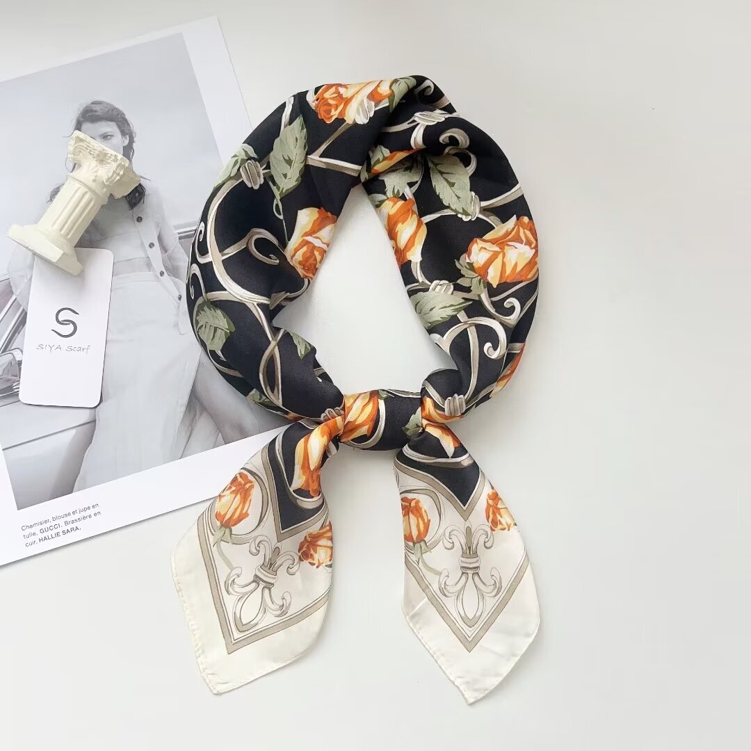 【C-91】新品 レディース 正方形70cm スカーフ 巻き方 首元 おしゃれ 飾り 春夏 シルク調 ストールバックスカーフ