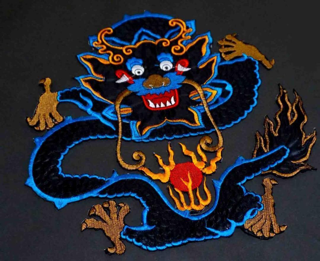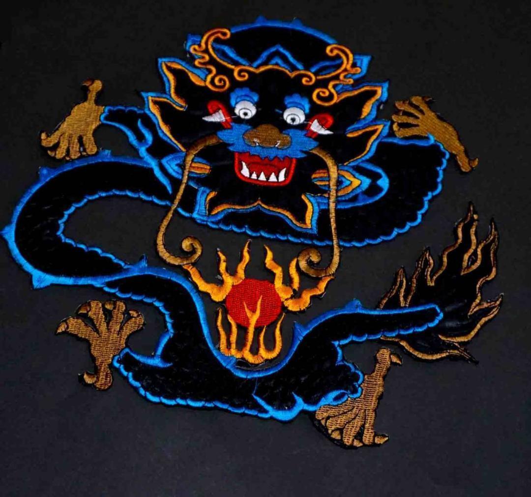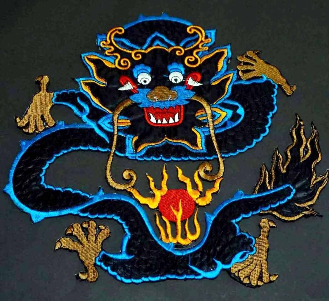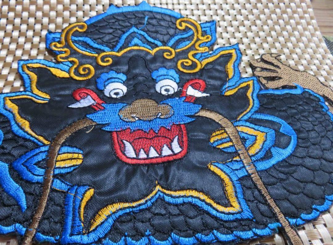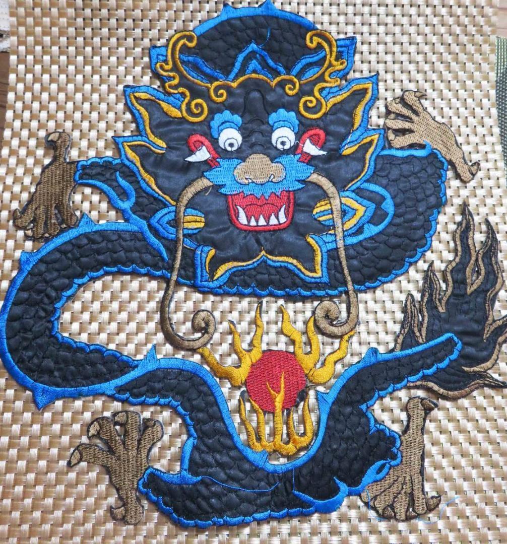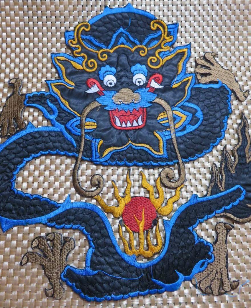 特大 ■黒龍姿鱗 ■型抜き■『清朝皇帝黒龍』 圧着■■『極東昇龍王』■レトロデザイン ◆新品未使用 DRAGON ラストエンペラー ドラゴン 刺繍ワッペン(パッチ)◆ アジア 江戸時代 唐 宋 明朝 清朝 ◆激シブ◇アート