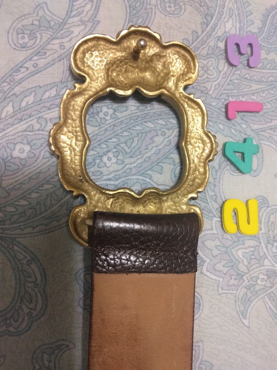 《寸法》ウエスト最大91cmウエスト最小80,5cm5 穴ございます。 バックルの大きさは横10,3cm縱7,4cmです。ベルト幅3,8 cm