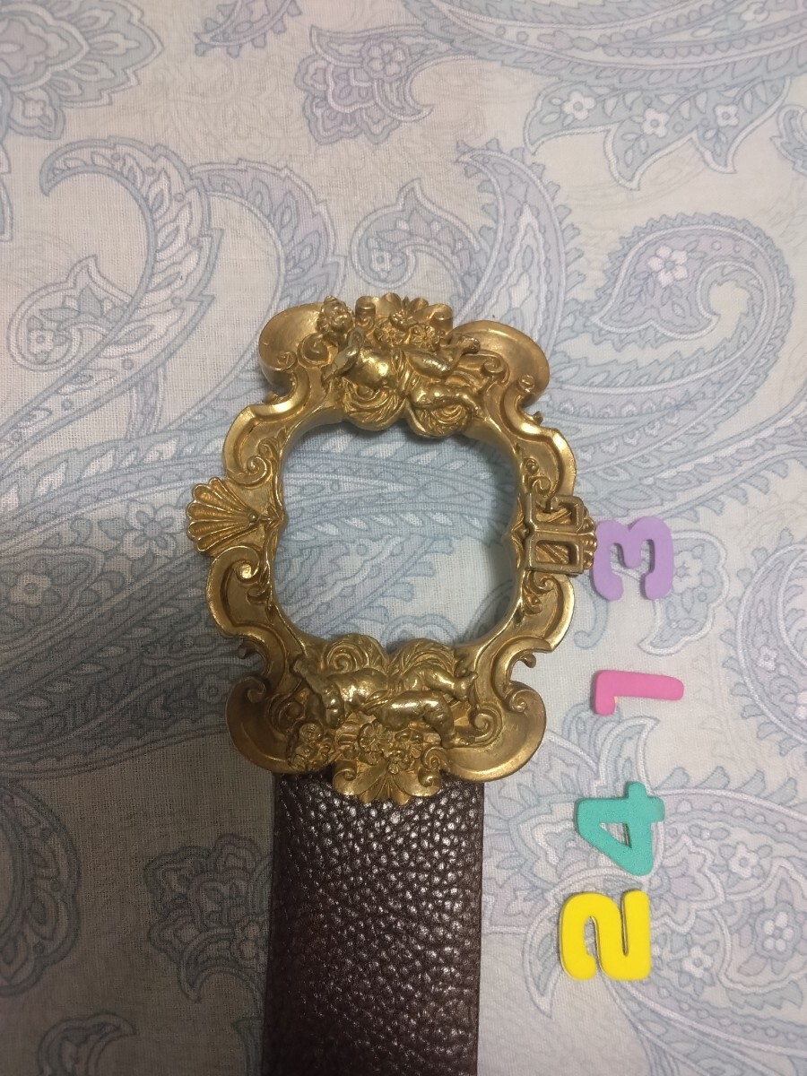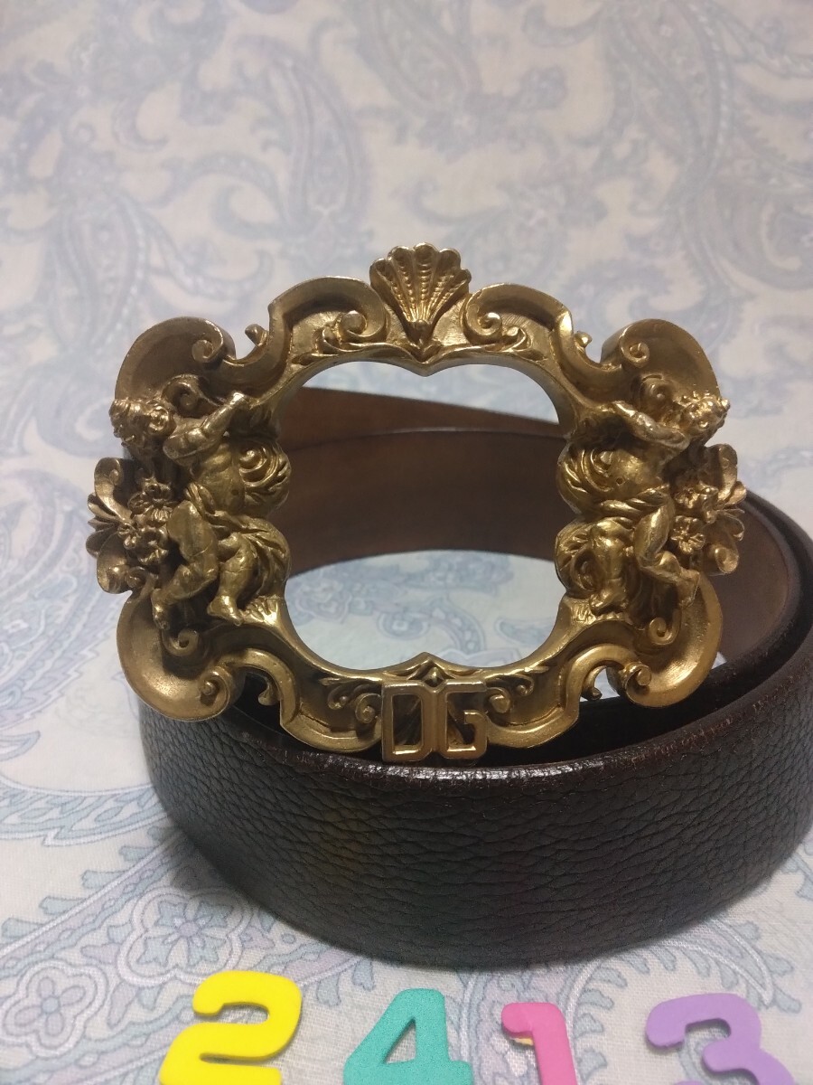 《商品詳細》ドルチェ&ガッバーナのロゴマルチエンジェル付き金色バロック調バックルの焦げ茶色レザーベルトです。発送日は配送条件の発送開始日をご覧下さい。 サイズは90です。レザーに傷色落ち曲がりがございます。あくまで中古なので経年劣化や汚れ等があること前提でお願い致しますので完璧を求める方は入札しないで下さい。NCNRでお願いします。悪い評価の多い方の入札はこちらの判断で消させて頂きますのでご了承下さい。良いと非常に良いの評価が96%以下の方は入札される前に質問欄より購入意欲を明示して下さい。もしそうされないで入札された場合削除させて戴きます。最近落札されても連絡頂けなかったりキャンセルされる方が非常に多いのでもし落札されたにも関わらずその後期限迄に連絡されなかったりキャンセルされた場合はヤフーや関係当局に通報させて戴きます。落札日から2日以内のご連絡とかんたん決済の入金期限を守れる方の入札のみにさせていただきます。ご希望でしたら同梱致します。発送作業は主に平日になります。取り置きは最初の落札品のかんたん決済の入金期限迄に全ての落札商品の合計金額を入金できる期間迄とさせて戴きます。