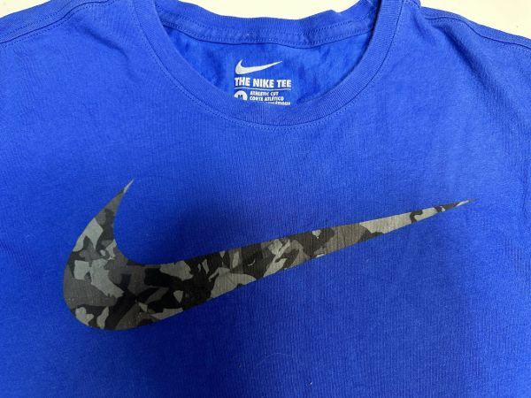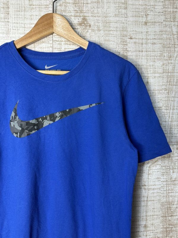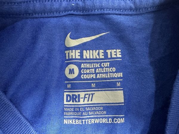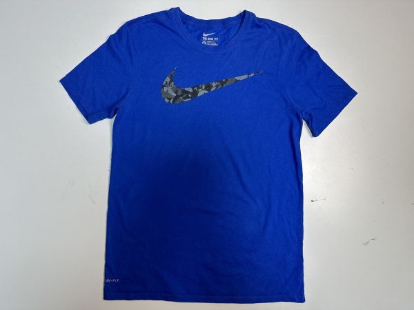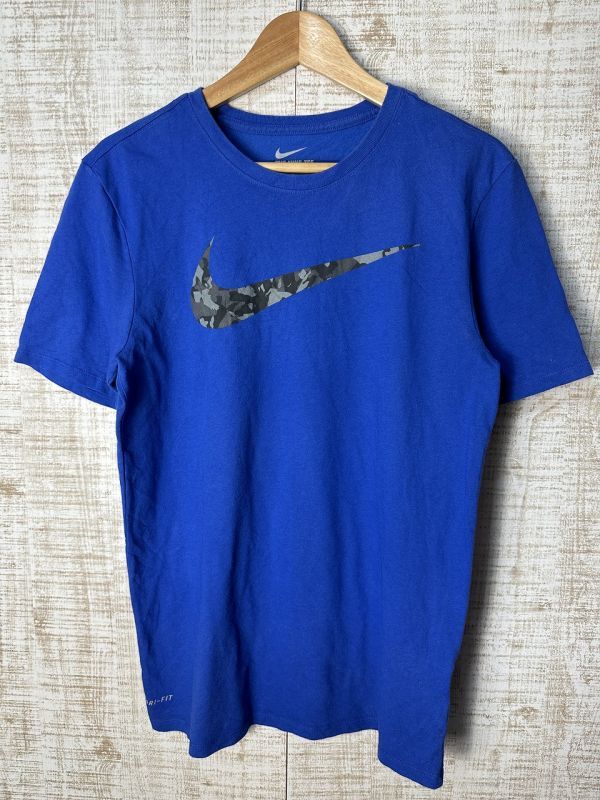 ●US USED NIKE ナイキ Tシャツ DRI-FIT スポーツ ドライ 速乾 スウォッシュ ロゴ プリント ブルー青【M】コットンポリ