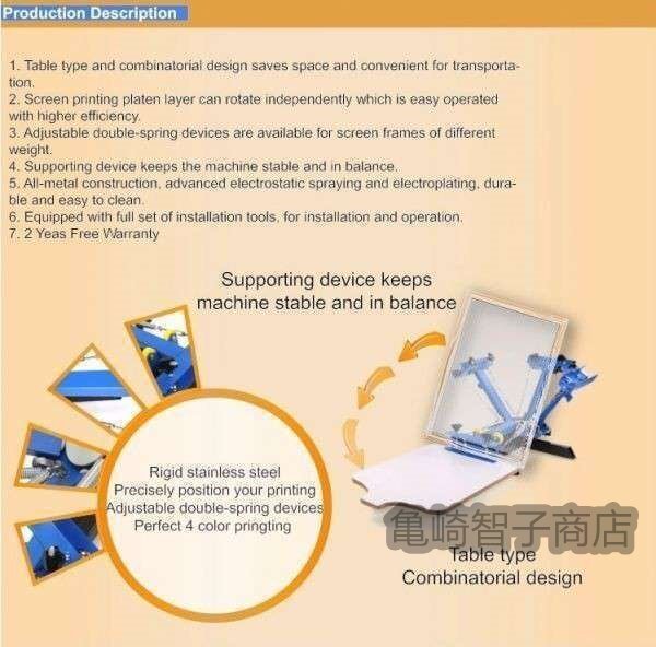 商品名:シルクスクリーン印刷機 4色 4ステーション Tシャツ 業務用 家庭 DIY ハンドクラフト NS404