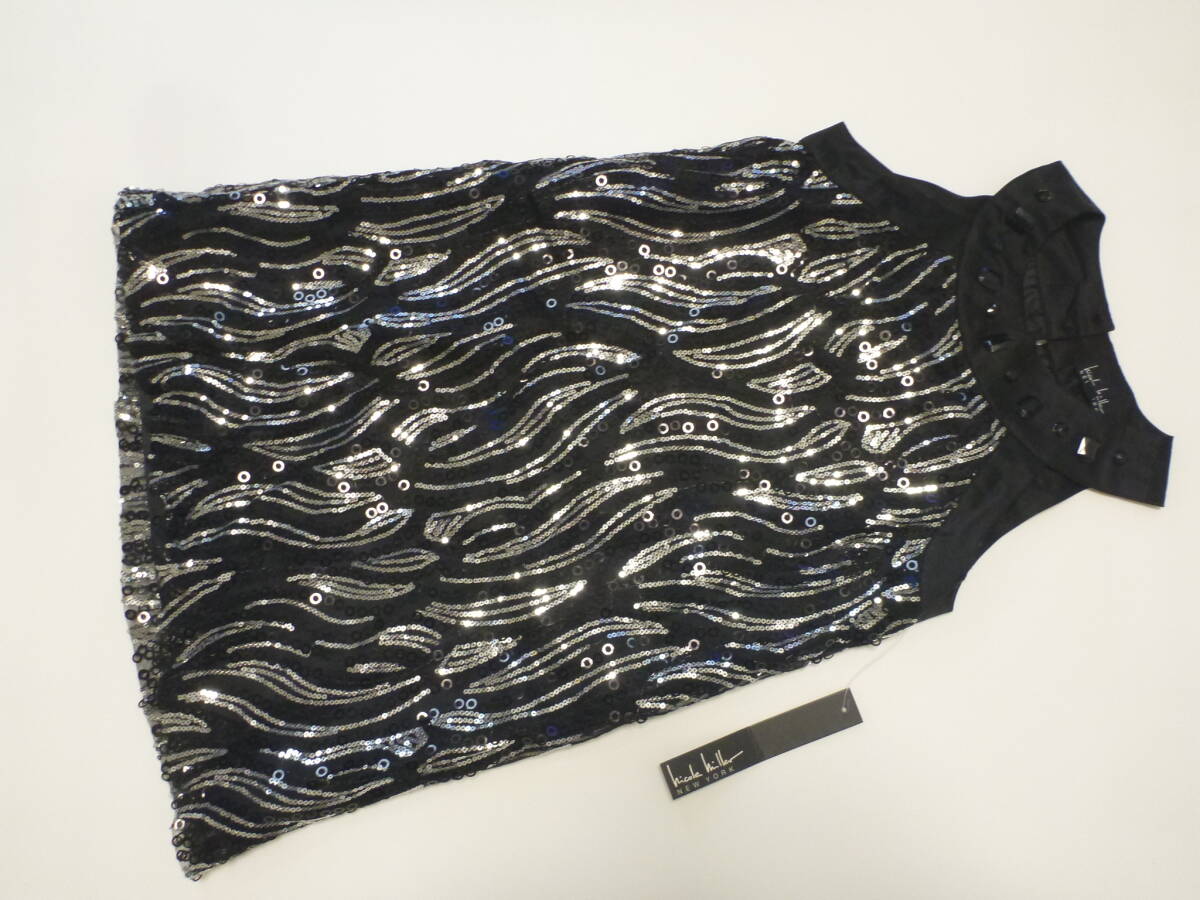 新品 ニコルミラー Nicole Miller★黒×シルバー 豪華スパンコール ワンピース ドレス 8 130