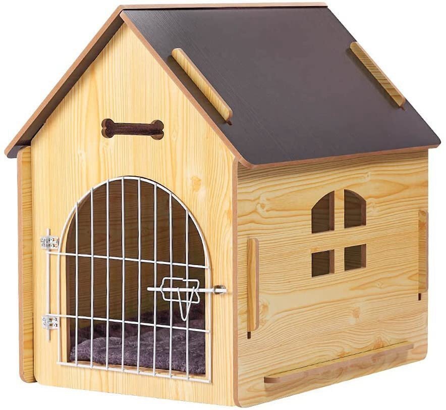 環境にやさしい木製。お部屋の雰囲気に合わせられる屋根の色、リビングに置けるペットハウス (屋内用)。