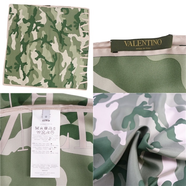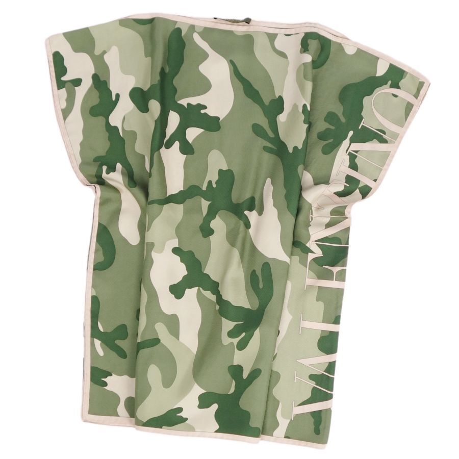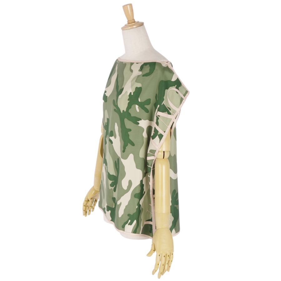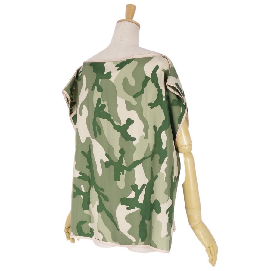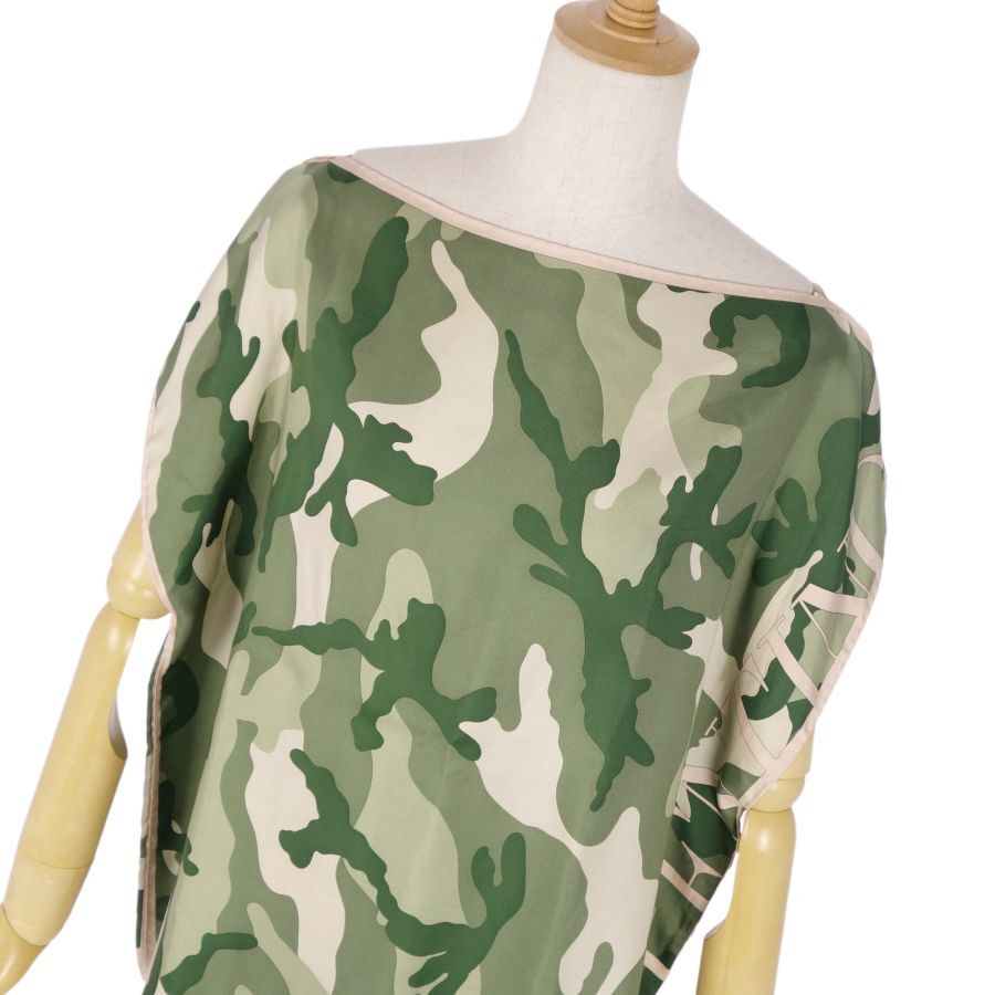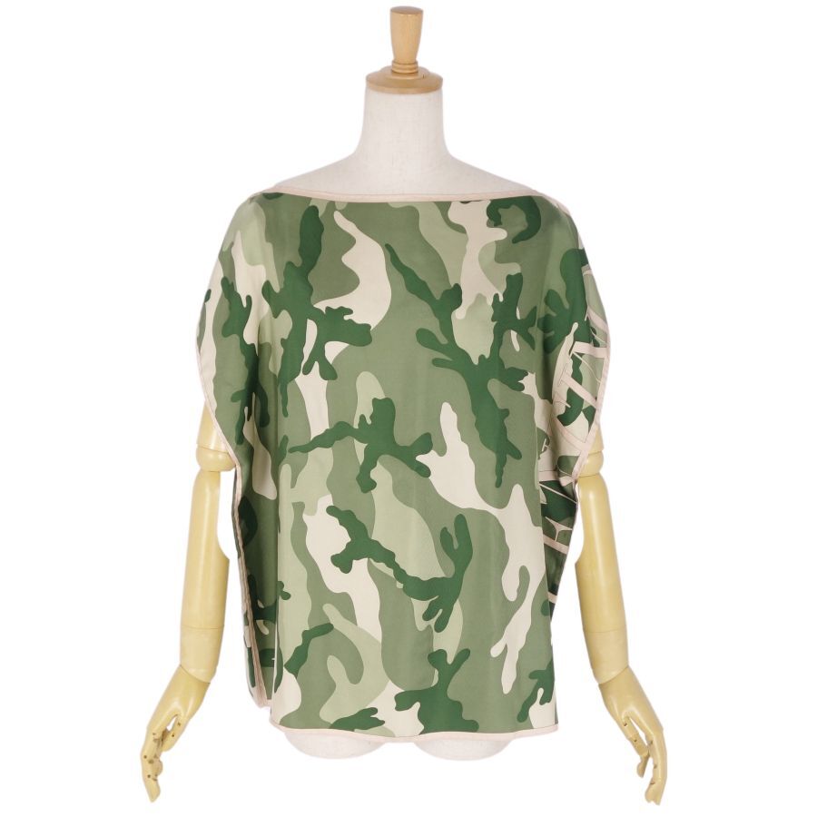 | 美品 ヴァレンティノ VALENTINO シャツ フレンチスリーブ 総柄 迷彩 シルク レディース 42(XL相当) グリーン/ベージュ |