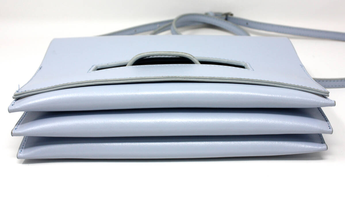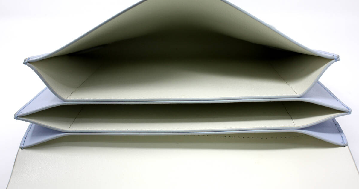 つるんとした牛革レザーを使用し、メインポケットが3ヵ所別れたデザインのアイテムです。