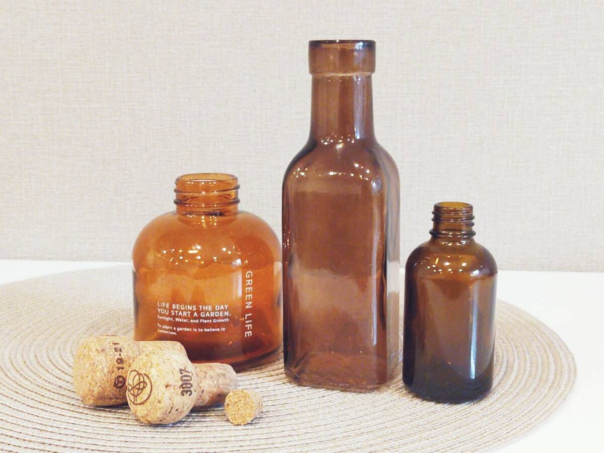 ・ブラウンのガラス瓶(保管品)、茶色3点set。