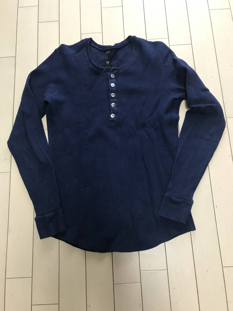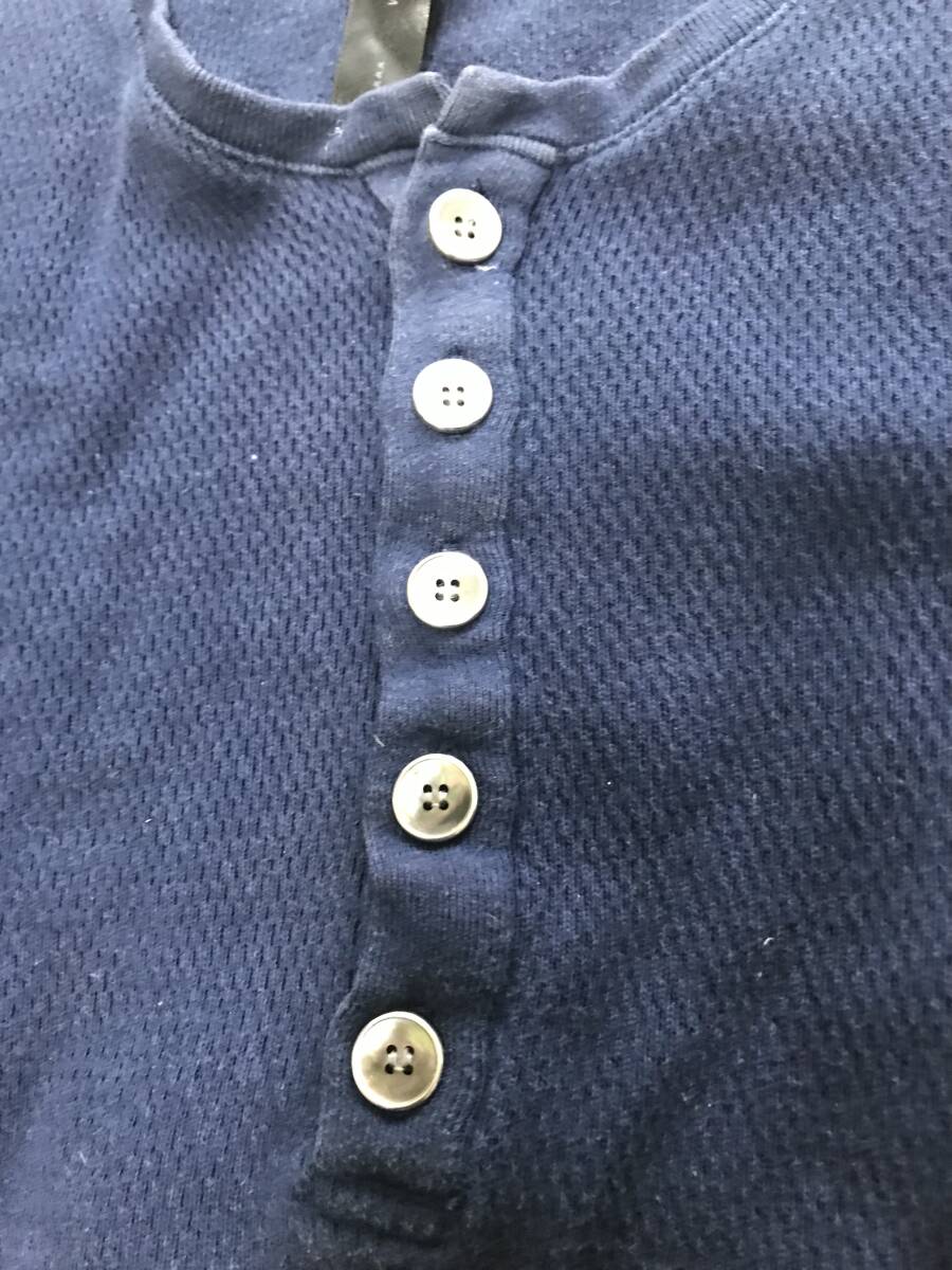 wjkのワッフル地、ヘンリーネックカットソーになります。色はネイビーです。ボタンはシェル風のメタルボタンでオシャレと思います。状態は使用感のある古着といった感じです。大きなダメージ、汚れ等はありません。状態は写真画像にてご確認ください。サイズ表記M、実寸で着丈65、身幅47、肩幅40、袖丈65になります。素人採寸のため誤差はご了承ください。落札後はNCNRでお願いします。それではご入札お待ちしております。