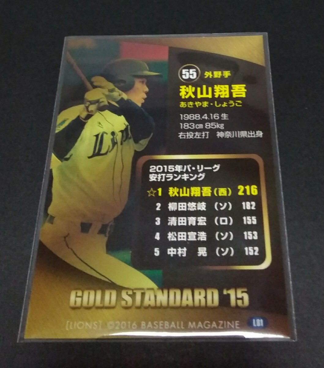 2016年BBM ライオンズ 秋山翔吾(西武)GOLD STANDARD '15 216安打!No,L81。