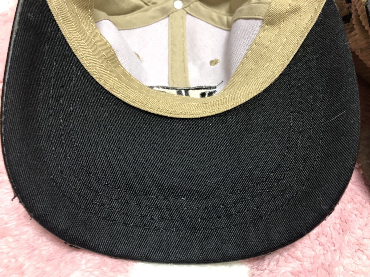 使用せずに自宅保管していましたが、キャップのツバ部分が2点共に剥がれ箇所が多数ございます。ご了承下さい。