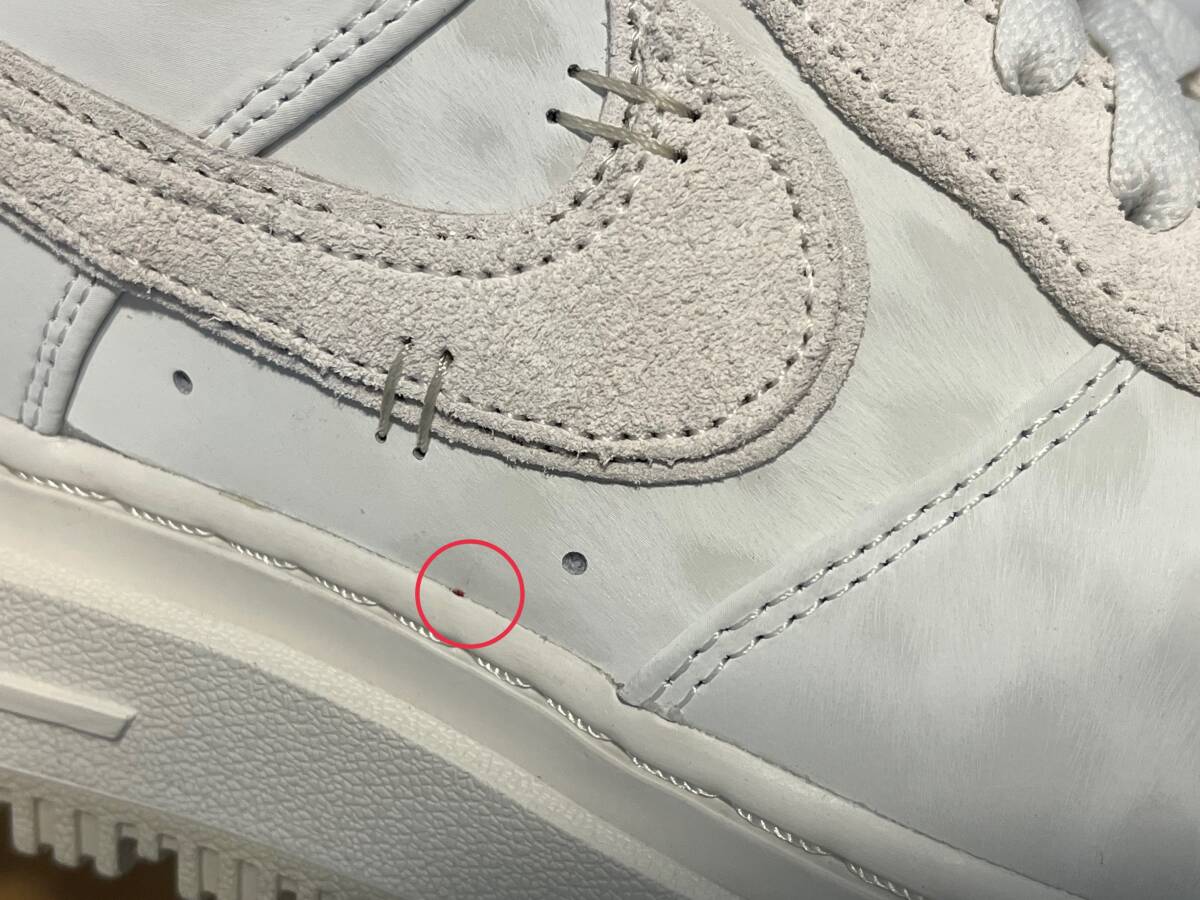■右足外側のソールとの境目に赤い点汚れがございます(画像8)