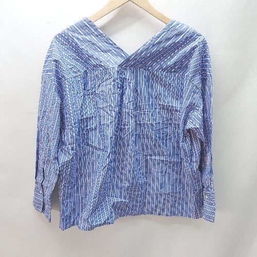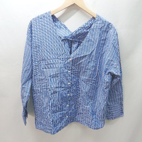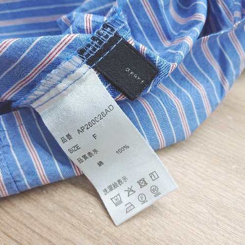 ◇ apart by lowrys アパートバイローリーズ ストライプ柄 前後Vネック 長袖 シャツ サイズF ブルー系 レディース E