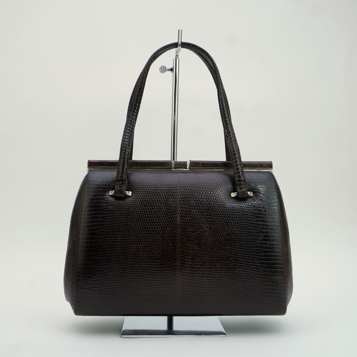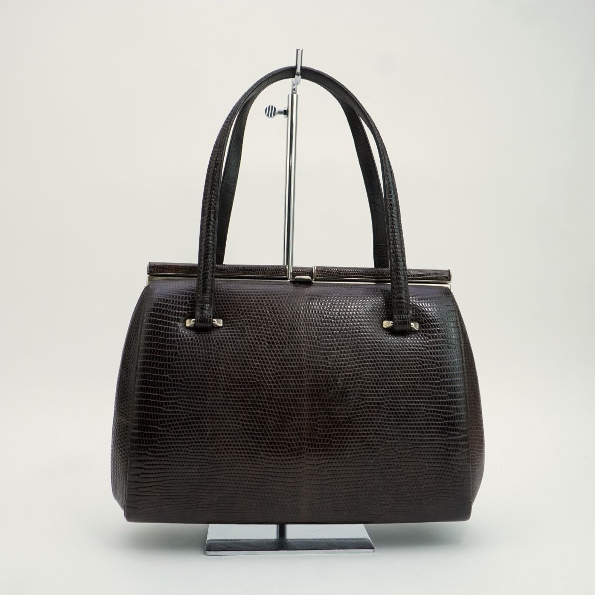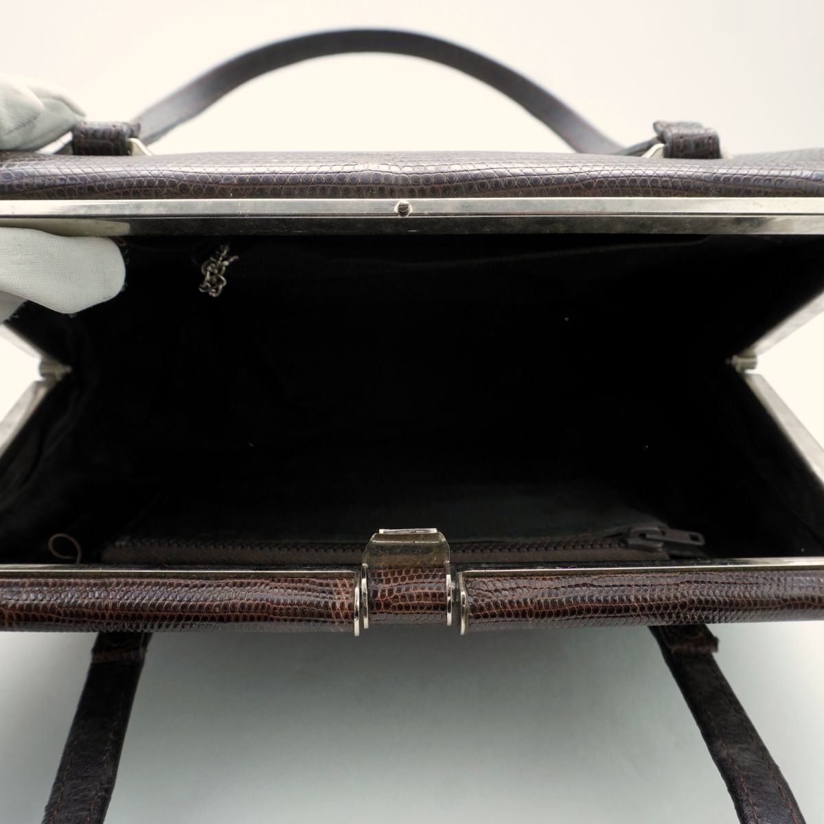 ハンドバッグ がま口 シルバー金具 クロコダイル レザー ブラウン@JG14