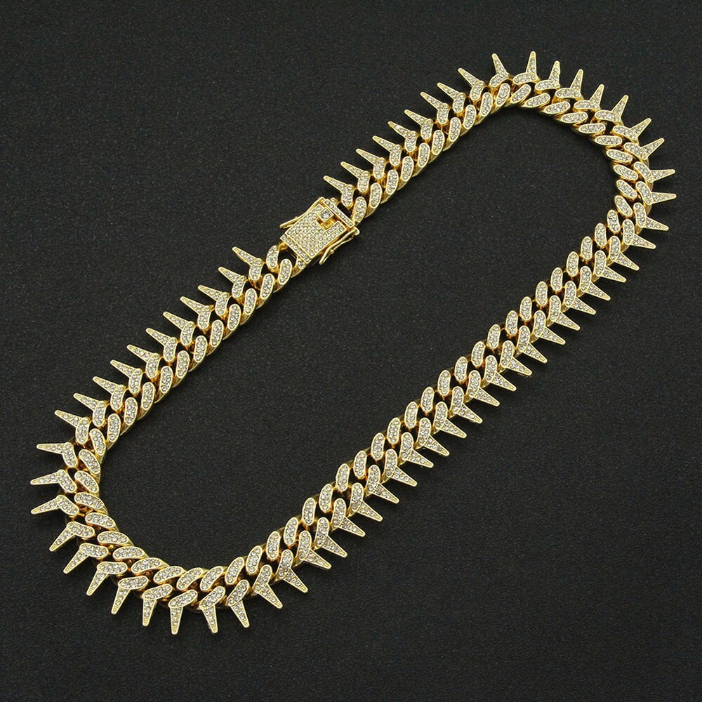 ☆新品新作 海外限定 トップブランド 18KGP(Gold Plated)鍍金ゴールドネックレス 棘トゲ メンズチェイン 長さ50センチ 幅2センチ 国内未発売 安心安全匿名配送 素材:亜鉛合金 |