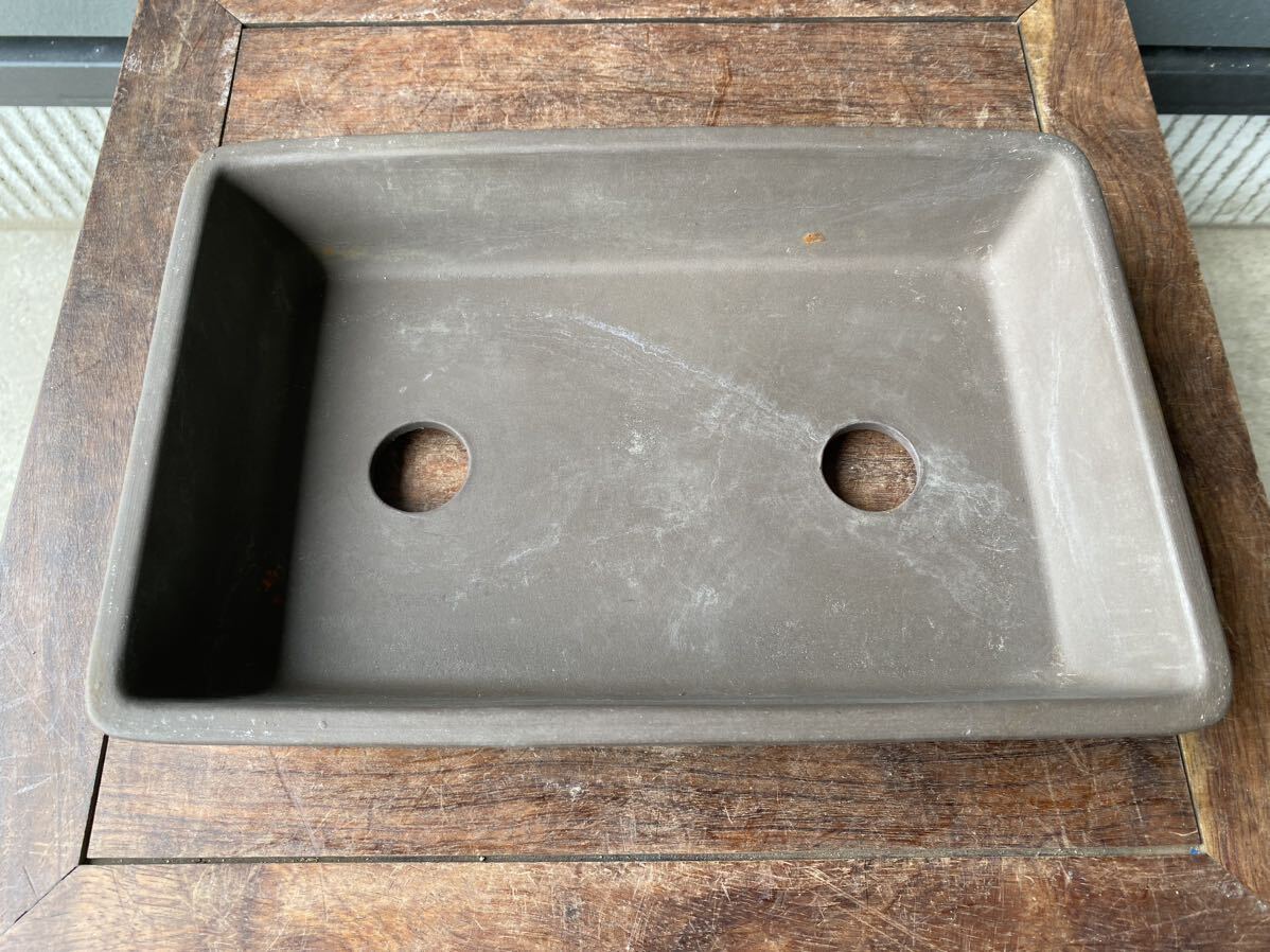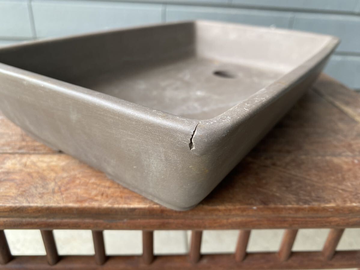 長方で鳥泥の盆栽鉢です。