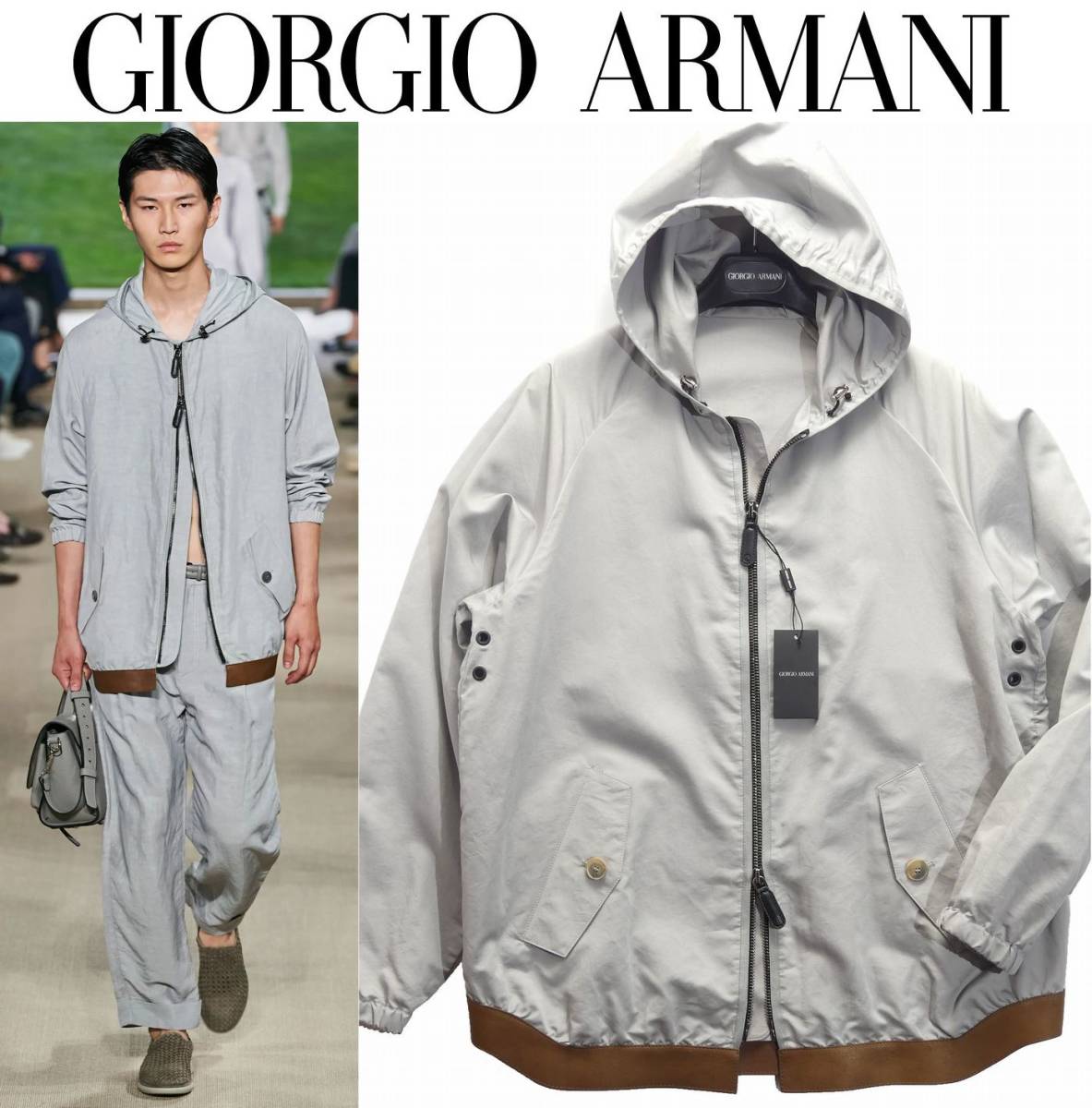 春夏秋543,000円新品GIORGIO ARMANI★ルーズな感じが洒落ているコレクション撥水フーディーブルゾン【50=日本L~XL】
