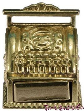 キャッシュレジスターのミニチュアです!金属製で重みがあります。引き出しも引き出せますよ!背面にも装飾があり、お店屋さんの良いアクセントになってくれそうです!ぜひ貴方のドールハウスに!サイズ:W32xD30xH36mm