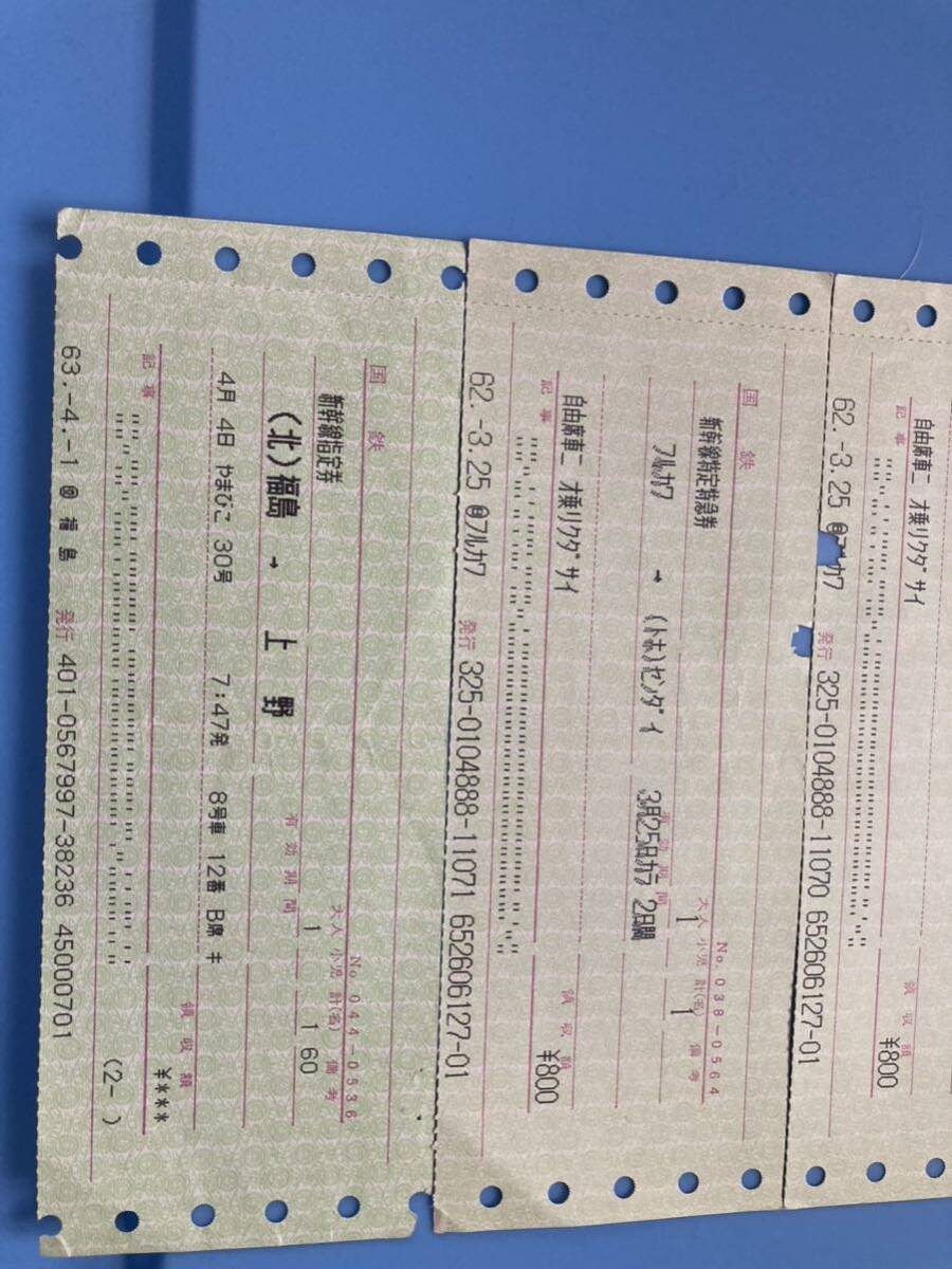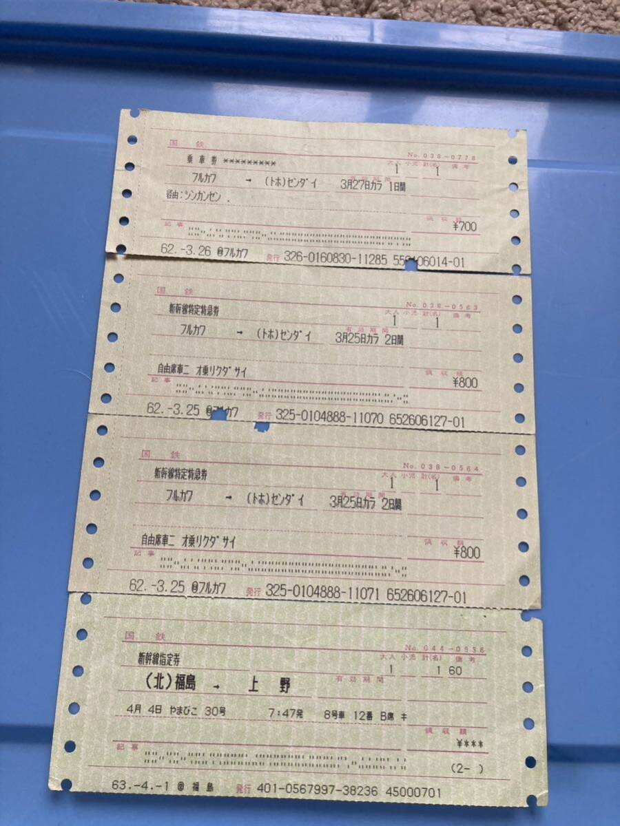 中古品 送料920円 東北新幹線 特急券 乗車券 切符 国鉄 キップ 昭和63年 昭和62年 上野 古川 仙台 福島 やまびこ 30号 4枚セット