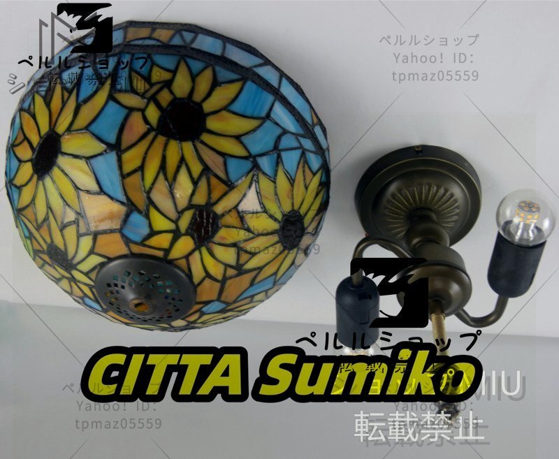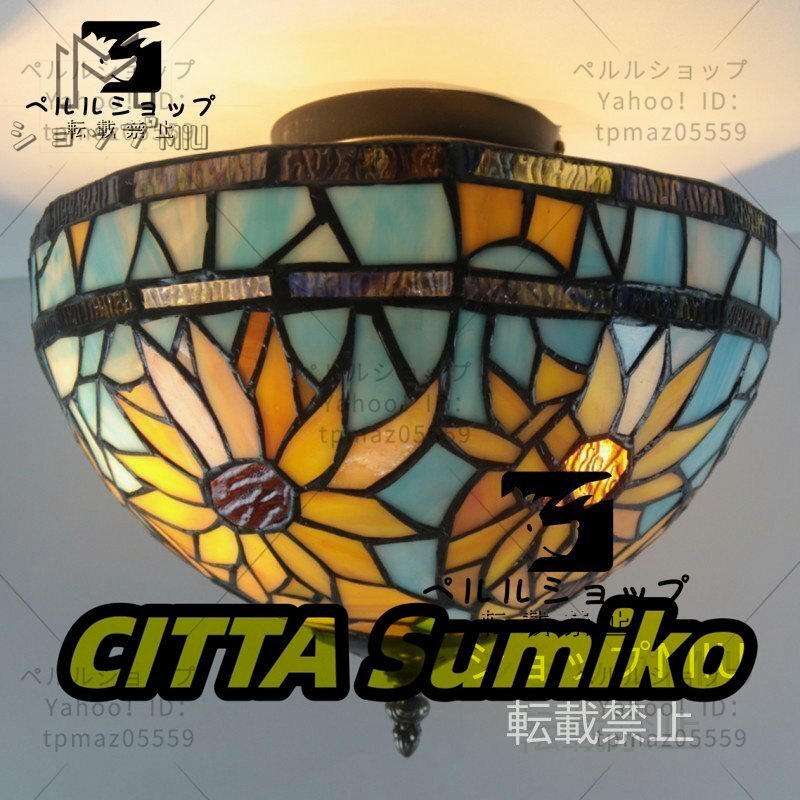 ◆芸術品◆新品◆ステンドランプ 照明 シーリングライト ステンドグラス アンティーク 花柄 レトロな雰囲気 ティファニー技法 室内装飾