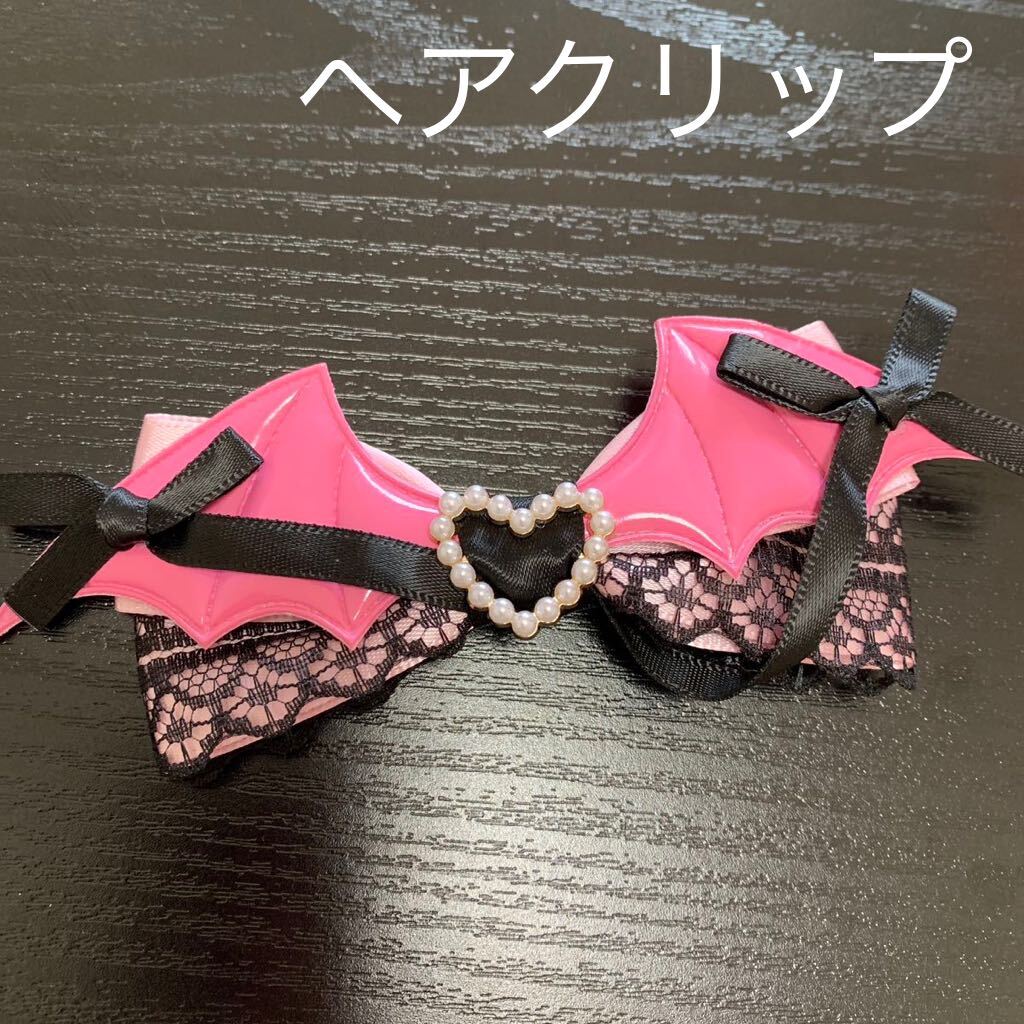 レディース アクセ アクセサリー ヘアアクセサリー ヘアクリップ ピン クリップ ロリータ 量産 量産型 地雷 地雷系 コスプレ メルヘン 夢 夢可愛い ピンク ブラック 黒 デビル 悪魔 デーモン ゴスロリ フェイクパール ハート