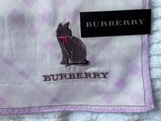 新品★バーバリー★大判ハンカチ★猫・ロゴ刺繍★ピンクチェック★58×58cm★ミニスカーフにも★BURBERRY