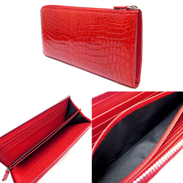 コメント 鮮やかなレッドが目を惹く、L字ファスナー長財布です。艶やかな光沢、班模様が美しいクロコダイルを贅沢に使用。シルバーカラー金具をあしらい派手になりすぎないデザインも魅力です。